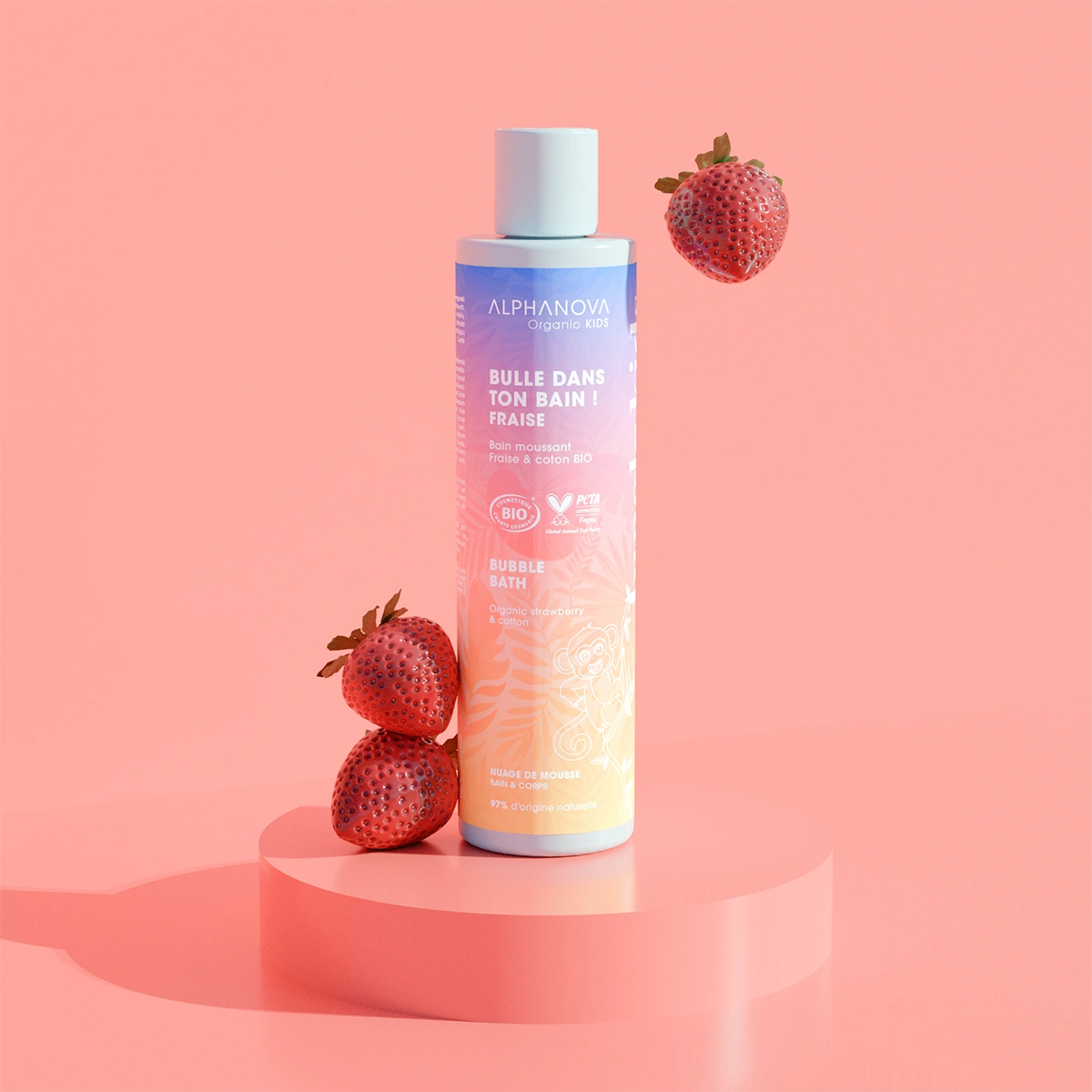 Stebuklingos braškių kvapo vonios putos rūpinasi vaikų oda maudymosi metu – oda drėkinama dėl migdolų aliejaus ir saugoma ramunėlių ekstrakto bei alavijo. Alphanova Kids produktai pasižymi atidžiai atrinktomis natūraliomis ir ekologiškomis sudedamosiomis dalimis.