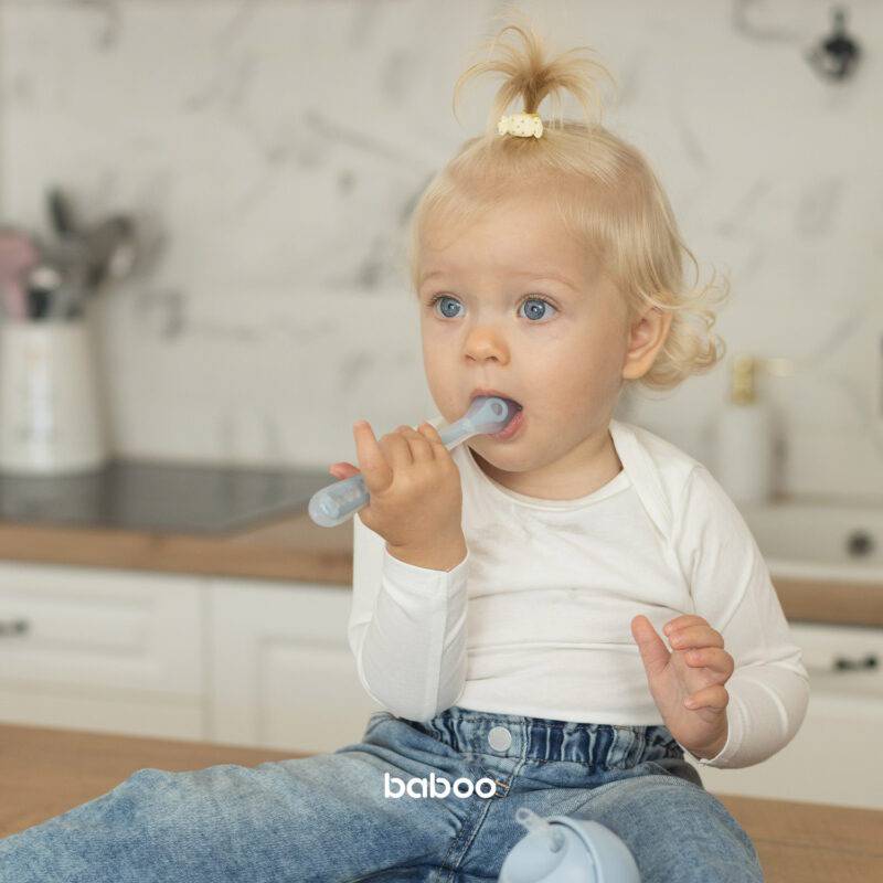 „BABOO®” silikoninis šaukštelis yra idealus pasirinkimas pirmiesiems kūdikio kąsniams. Pagamintas iš ypatingai minkšto silikono, šaukštelis švelniai liečiasi su jautriomis dantenomis, suteikdamas komfortą ir saugumą atrandant naujus skonius.