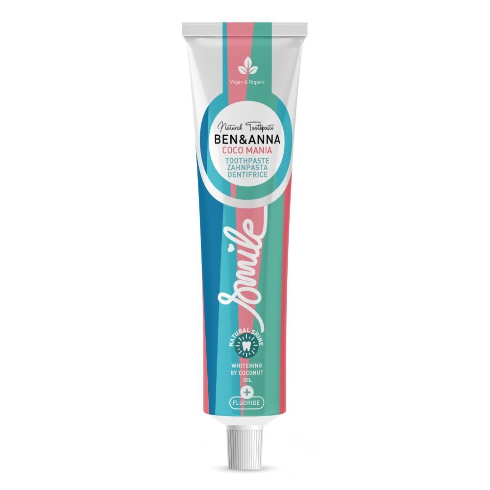 Kokosų skonio. Natrue sertifikuota natūrali kosmetika: natūralūs ingredientai sveikiems ir baltiems dantims. Dantų pasta su fluoru (1450 ppm) padeda išvengti apnašų susidarymo ir ėduonies.
