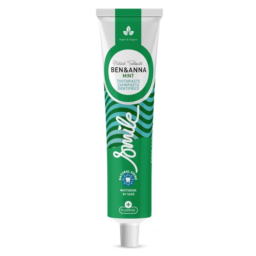 Mėtų skonio. Natrue sertifikuota natūrali kosmetika: natūralūs ingredientai sveikiems ir baltiems dantims. Dantų pasta su fluoru (1450 ppm) padeda užkirsti kelią apnašų ir ėduonies susidarymui.