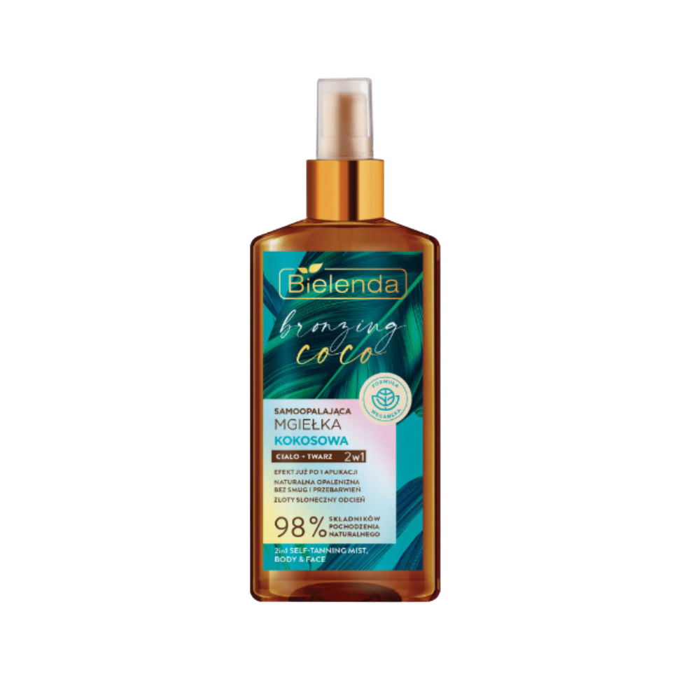 Sistemiškai naudojant odos spalva palaipsniui tamsėja, įdega ir įgauna sveiką, auksinį atspalvį. Kūno purškiklio sudėtis apjungia ingredientus, kurie padeda paryškinti odos atspalvį, tokius kaip morkų sėklų aliejus ir graikinių riešutų kevalų ekstraktas, su rūpestinga hialurono rūgšties, trehalozės, betaino ir natūralaus apelsinų ekstrakto galia. Purškiklis greitai susigeria, o švelni formulė palengvina tolygų užtepimą, apsaugant nuo negražių dryžių ir vietinių spalvos pakitimų. Nuostabus kokosų kvapas ilgai išlieka ant odos. Ideali priemonė visų tipų odai.