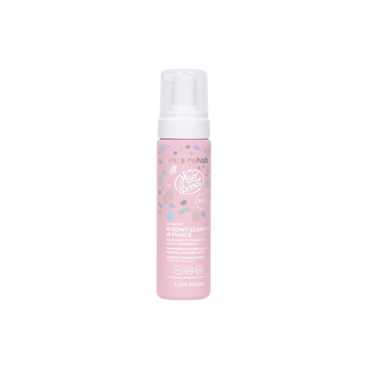 HairBoom Rice Rehab linija sukurta kasdienei sausų ir pažeistų plaukų priežiūrai, suteikiant švelnų, bet veiksmingą valymą ir atkuriamąją priežiūrą. Itin lengvas putų šampūnas tinka visų tipų ir poringumo plaukams, padedantis atkurti sveikatą, blizgesį ir elastingumą.