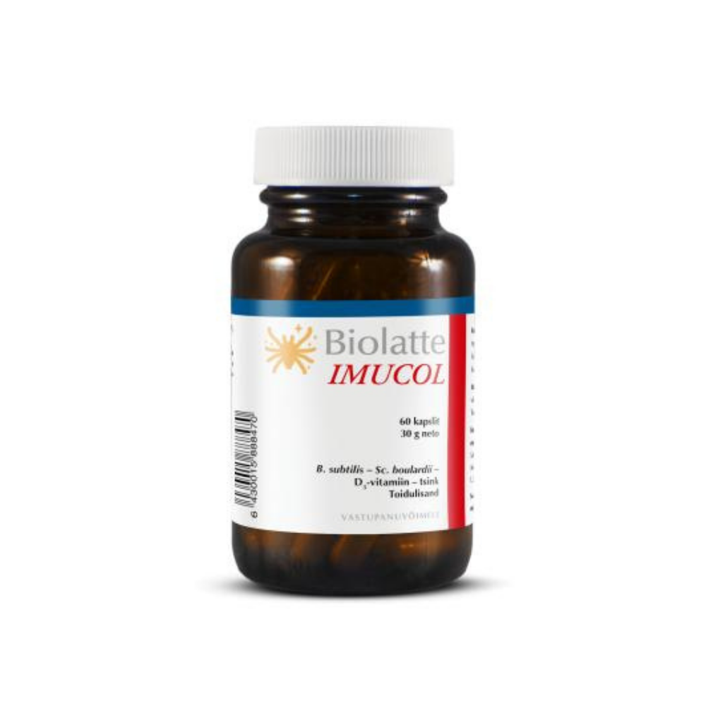 Biolatte IMUCOL yra specialiai sukurtas imuninės sistemos stiprinimui. Produkte yra kruopščiai atrinktų grynų ingredientų, kurie yra svarbūs organizmo atsparumo palaikymui. Bacillus subtilis – klinikiniai tyrimai rodo, kad Bacillus subtilis pasižymi unikaliu gebėjimu efektyviai stimuliuoti natūralų organizmo atsparumą. Saccharomyces boulardii yra gerai ištirta probiotinė mielė, kuri turi reikšmingą poveikį gleivinių atstatymui. Sveikos gleivinės padeda išlaikyti žarnyno mikrobų balansą. Vitaminas D3 ir cinkas prisideda prie normalios imuninės sistemos veiklos. Topinambas yra puikus skaidulų šaltinis. Skaidulos palaiko žarnyno mikrobiotos pusiausvyrą.
