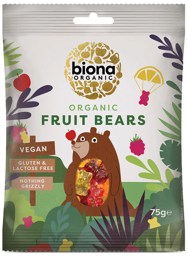 Natūraliai skanūs ekologiški vaisiniai guminukai. Guminukai „Gummy Bear” yra be glitimo ir laktozės. Sudėtyje nėra želatinos. Tinka veganams.