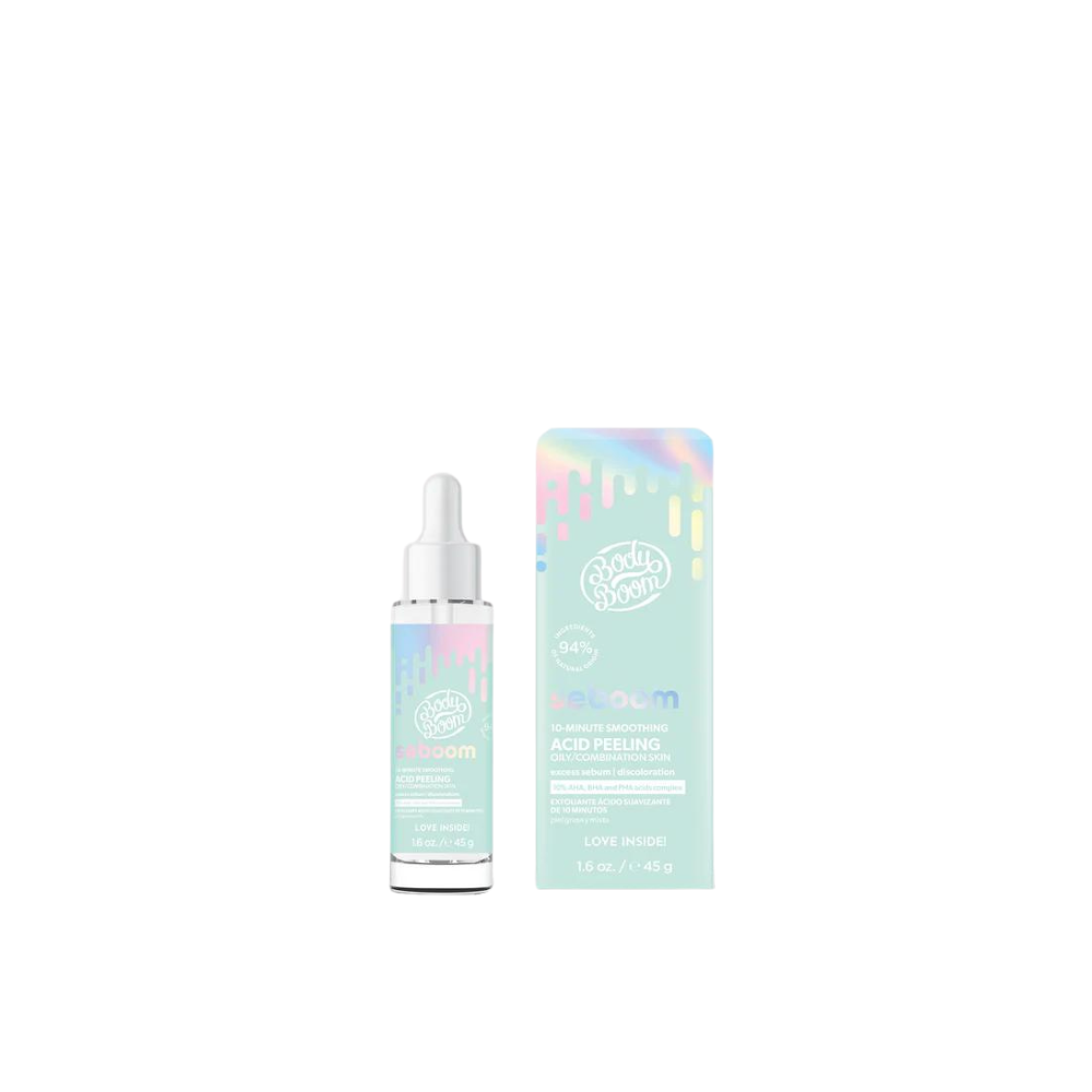 Paspauskite atstatymo mygtuką savo odai su BodyBoom Seboomi lyginančia 10 minučių rūgštine veido kauke/pilingu. Vos 10 minučių ir Jūsų oda taps skaistesnė, sveikesnė ir labiau švytinti.