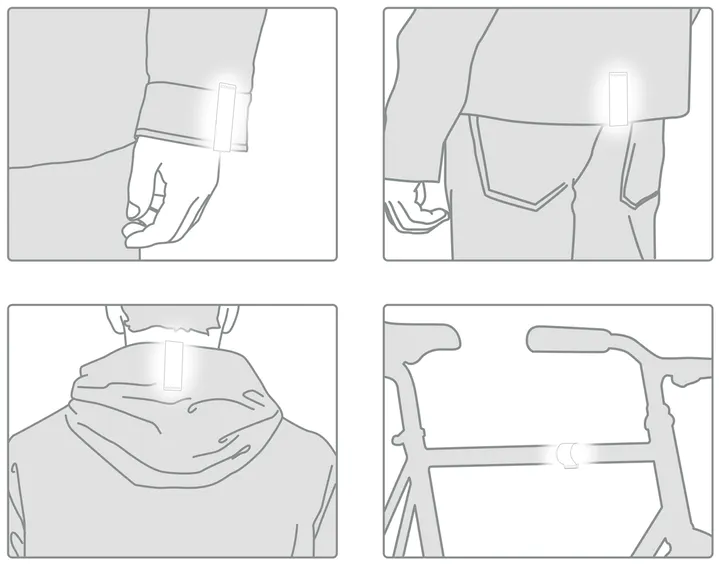 Lengvai pritvirtinamas atšvaitas atspindi šviesą atgal ir padaro jus matomus tamsoje. Stiprūs magnetiniai tvirtinimai laiko atšvaitus net ant storų žieminių drabužių.