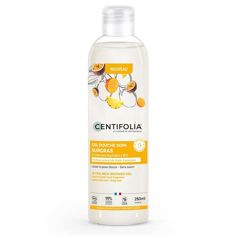 Centifolia SURGRAS dušo gelis švelniai valo ir drėkina odą, palikdamas ją aksomiškai švelnią ir maloniai kvepiančią. Egzotinių vaisių aromatas ir kreminės putos maloniai nuteikia prausimosi metu. Sudėtis praturtinta ekologišku augaliniu aliejumi ir alaviju, kurie maitina odą ir suformuoja apsauginį barjerą, sulaikantį drėgmę. Tinka kasdieniam naudojimui visų tipų odai.