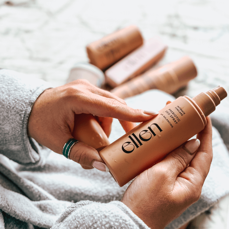 Makštis turi turėti natūralų savitą kvapą. Tačiau kirkšnyje, kaip ir pažastyse, yra prakaito liaukos. Intymios srities plovimas daugiau nei vieną kartą per dieną gali pašalinti apsaugines pieno rūgšties bakterijas. Vietoj to, galite naudoti ellen® Prebiotic Deo Spray – bekvapį ir kvapus neutralizuojantį intymų dezodorantą, kuris sukurtas tiems, kas nori atgaivos jausmo tarp prausimųsi.