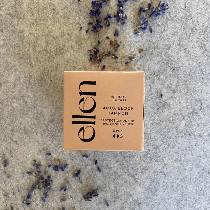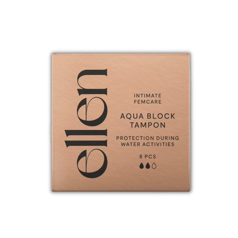 Mėnesinių metu makštis yra ypač jautri, o maudymasis ar plaukimas chloruotame ar užterštame vandenyje gali sutrikdyti natūralų makšties pH balansą. ellen® Aqua Block tamponas turi specialią vandeniui atsparią apsaugą, neleidžiančią vandeniui patekti į makštį maudantis ir plaukiant. Jei dažnai pasireiškia makšties sudirginimas, ellen® Aqua Block tamponas gali padėti išvengti sudirginimo maudantis.