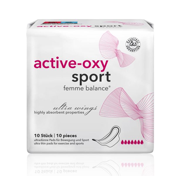 Lengvumas, pusiausvyra ir apsauga – visa tai suteikia Femme Balance Active-Oxy Sport aukščiausios kokybės higieniniai įklotai. Ypač ploni įklotai pasižymi puikiu sugeriamumu bei aktyvaus deguonies kvapą neutralizuojančiomis savybėmis – net ir gausesnių menstruacijų dienomis, sporto metu ar esant gausiam prakaitavimui. Tikime, kad moterys neturėtų atsisakyti sporto ir aktyvaus gyvenimo menstruacijų metu.