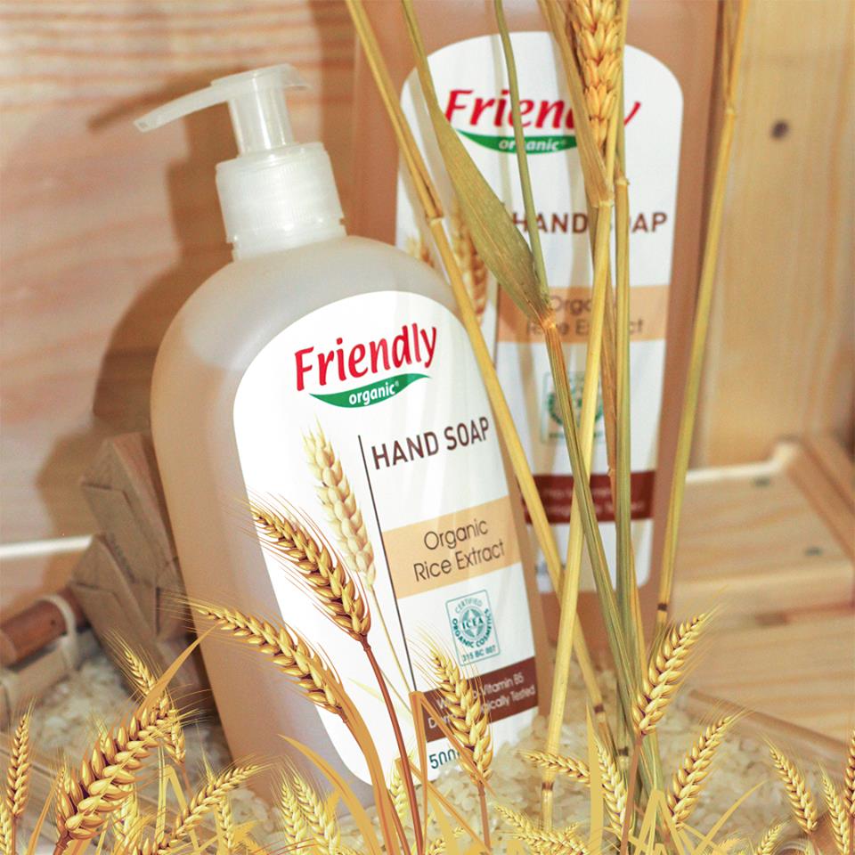 Draugiškas ekologiškas skystas muilas su augalinės kilmės ingredientais švelniai valo rankas. Ekologiškas ryžių ekstraktas kartu su provitaminu B5 drėkina odą, valo rankas ir suteikia šviežų kvapą. Muilas išlieka švelnus net ir dažnai plaunant rankas ir yra puikus pasirinkimas visos šeimos poreikiams.