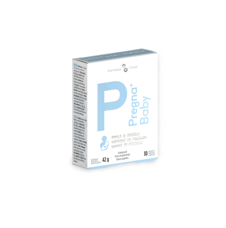 Nėščiosios ir žindančios moterys reikalauja žymiai daugiau vitaminų, mineralų ir mikroelementų. PREGNA+ BABY yra specialiai sukurtas biologiškai aktyvių medžiagų kompleksas, papildantis vitaminų, mineralų, mikroelementų ir būtinųjų riebalų rūgščių atsargas pogimdyvėms ir naujagimiams.