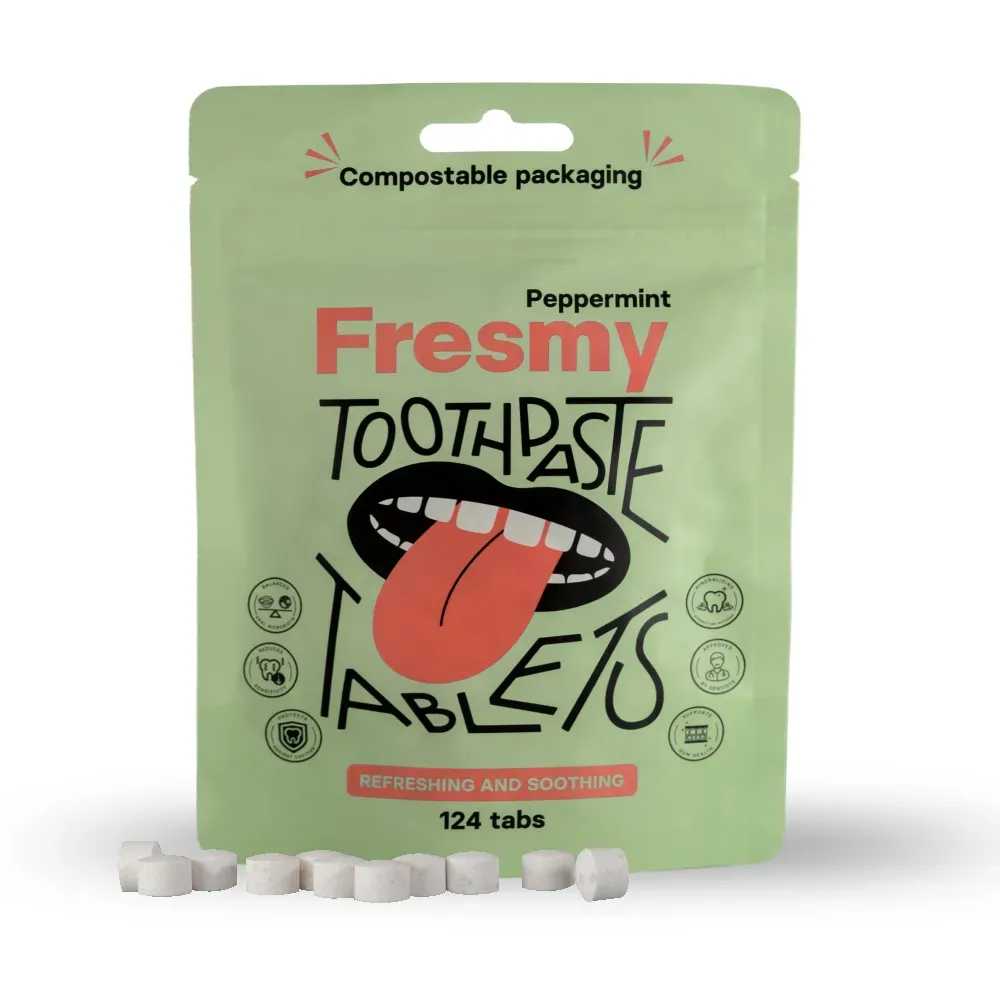 Mėtų dantų pastos tabletės turi hidroksiapatitą (HAp), kuris yra netoksiška alternatyva fluoridui. Jis natūraliai atkuria dantų emalį.