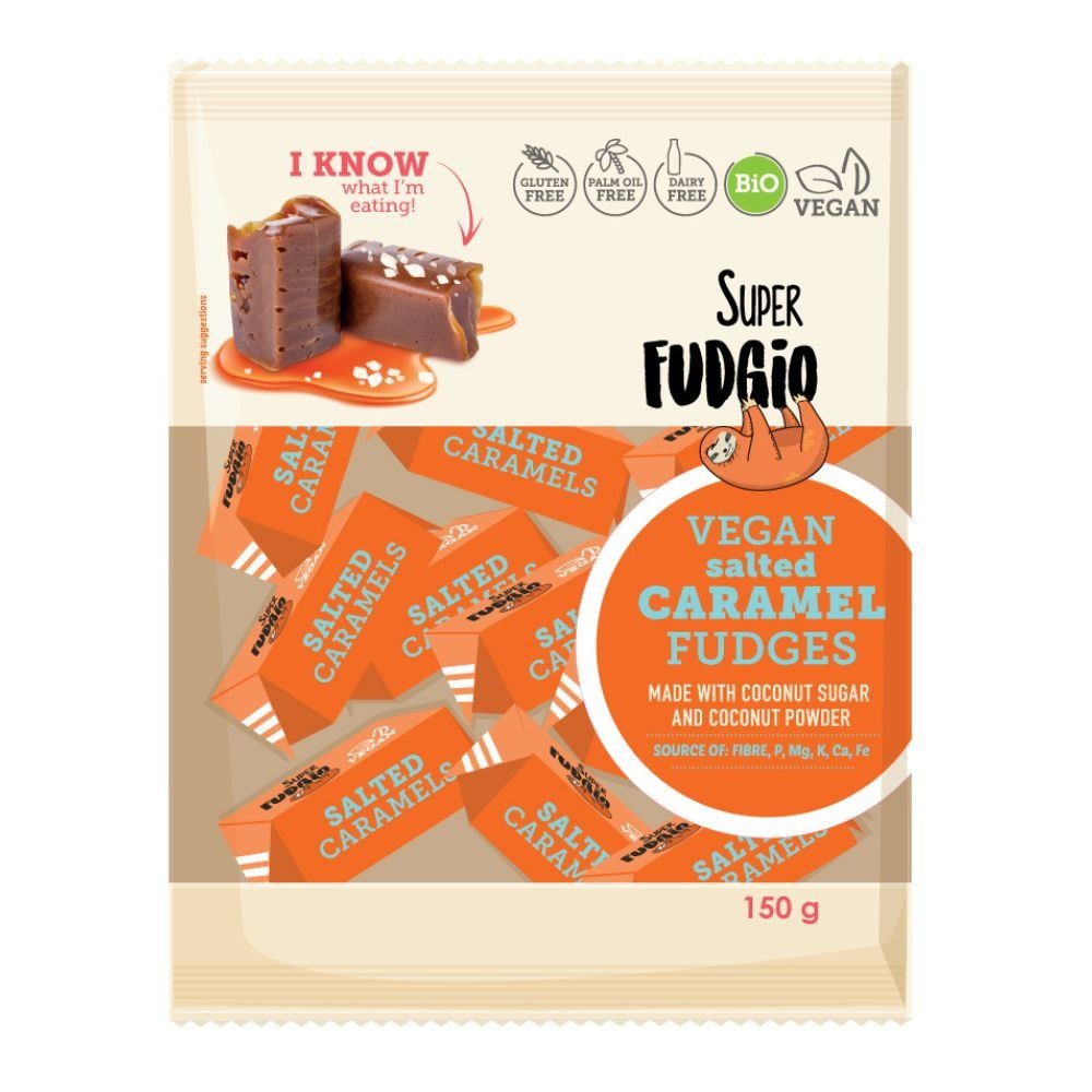 - Fudgio sūdyto karamelės skonio saldainiai yra itin kreminiai ir turtingo skonio.