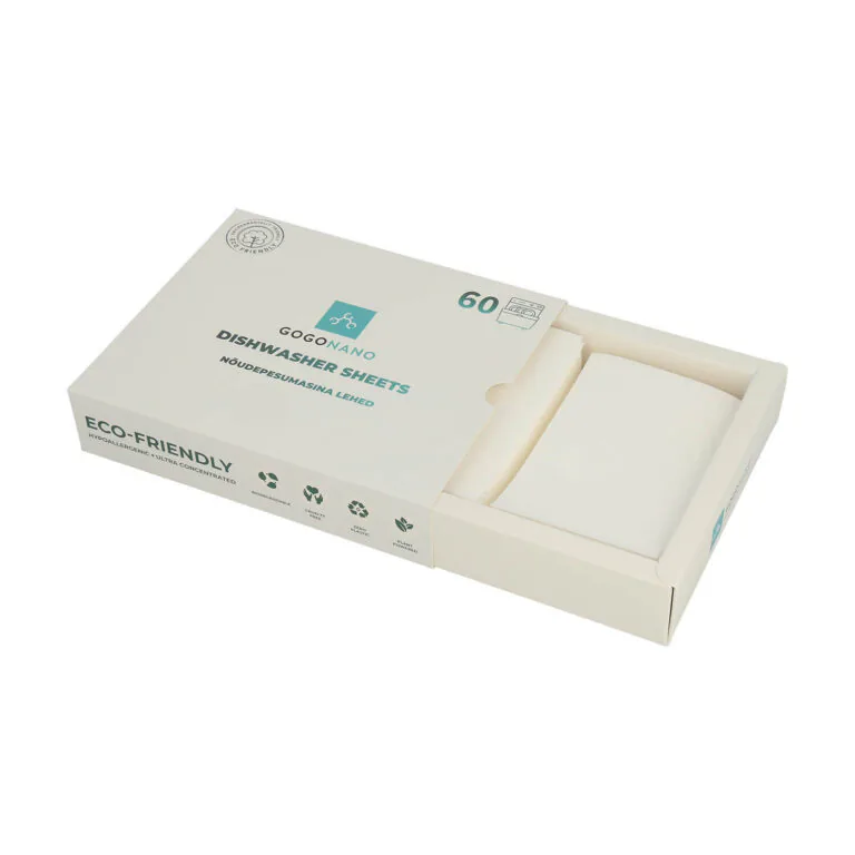 „GoGoNano” indaplovių lapeliai atneša paprastą ir ekologišką švarą į jūsų virtuvę. Mūsų išmaniai inovatyvūs bekvapiai indaplovių lapeliai siūlo galingą valymą be plastiko atliekų. Kiekvienas iš anksto dozuotas lapelis lengvai pašalina riebalus, kavos ir arbatos dėmes, bei užsistovėjusius maisto likučius. Lapeliai ištirpsta vos per 30 sekundžių – nesvarbu, ar vanduo karštas, ar šaltas – palikdami indus blizgančią švarius be miltelių ar gelio likučių. Bekvapė formulė užtikrina natūralią švarą be cheminio kvapo.