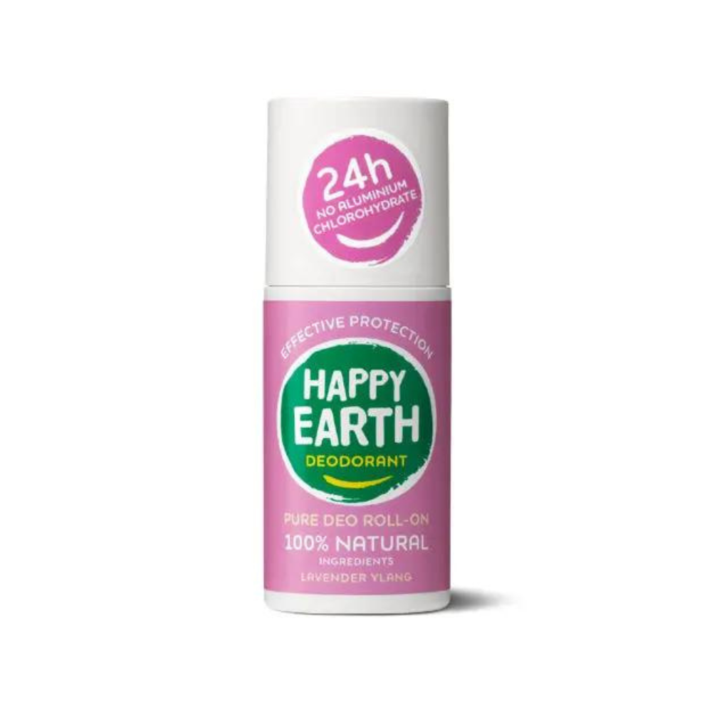 HAPPY EARTH DEODORANT yra 100% natūralus, 100% efektyvus ir sudėtyje neturi jokių cheminių medžiagų. Raminantis levandų ir ylang ylang kvapas, augaliniai ekstraktai, odą raminantis ekologiškas alavijas ir eteriniai aliejai. HAPPY EARTH DEODORANT sudėtyje naudojame tik tas sudedamąsias dalis, kurios tinka jūsų odai. Kai ką nors tepate ant odos, gera žinoti, kad joje nėra teršiančių ir nemalonių ingredientų, tokių kaip cheminės medžiagos, alkoholis ar kiti kenksmingi priedai. Todėl didžiuojamės NATRUE ir Vegan Society ženklais. O mūsų dezodorantų buteliukai pagaminti iš 100% perdirbto plastiko. Taigi rūpinatės ne tik savimi, bet ir mūsų planeta! Kad būtumėte laimingi: