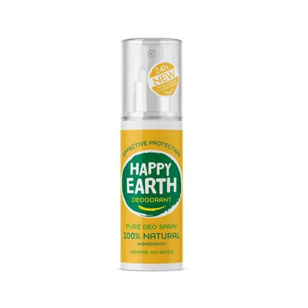HAPPY EARTH DEODORANT yra 100% natūralus, 100% veiksmingas ir turi 0% cheminių medžiagų. Žavingi jazminų ir ho medžio botaniniai ekstraktai, odą raminantis ekologiškas alavijas bei eteriniai aliejai. Į HAPPY EARTH DEODORANT dedame tik tas sudedamąsias dalis, kurios džiugina jūsų odą. Kai ką nors naudojate ant odos, smagu žinoti, kad sudėtyje nėra teršiančių ir nemalonių komponentų, tokių kaip cheminės medžiagos, alkoholis ar kiti kenksmingi priedai. Todėl didžiuojamės turėdami NATRUE ir Vegan Society sertifikatus. O mūsų dezodoranto buteliukai pagaminti iš 100% perdirbto plastiko. Taip rūpinatės ne tik savimi, bet ir mūsų planeta! Kad būtumėte laimingi: