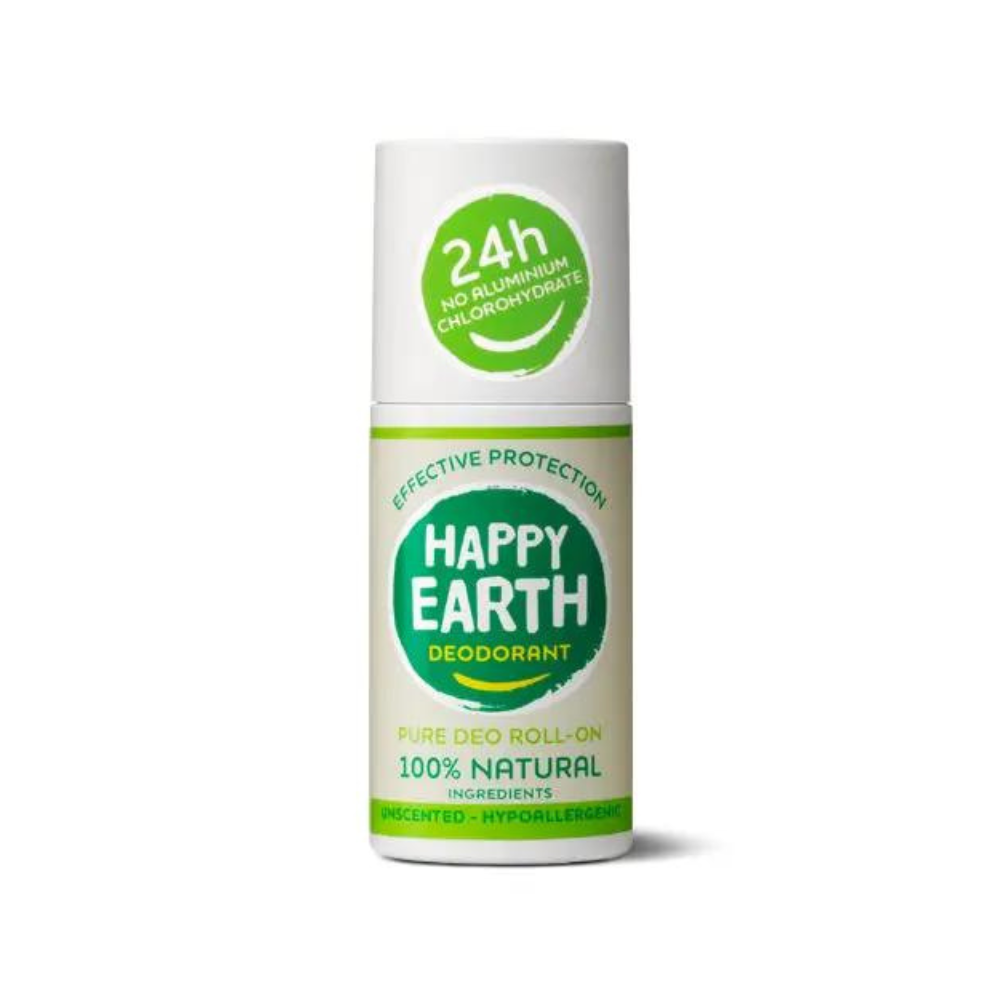 HAPPY EARTH DEODORANTAS – tai gryniausias dezodorantas pasaulyje: 100% natūralus, 100% efektyvus ir turintis 0% cheminių medžiagų. Bekvapis hipoalerginis dezodorantas su odą raminančia ekologiška alavijų sultimi. HAPPY EARTH DEODORANT sudėtyje rasite tik tokias sudedamąsias dalis, kurios teigiamai veikia Jūsų odą. Užsitepus ant odos, gera žinoti, kad dezodorante nėra jokių teršiančių ar nemalonių sudedamųjų dalių, kaip cheminiai priedai, alkoholis ar kiti kenksmingi papildai. Todėl su pasididžiavimu žymime produktą NATRUE ir Vegan Society sertifikatais. Mūsų buteliukai pagaminti iš 100% perdirbto plastiko. Taip rūpinatės ne tik savimi, bet ir planeta! Norėdami, kad būtumėte patenkinti: