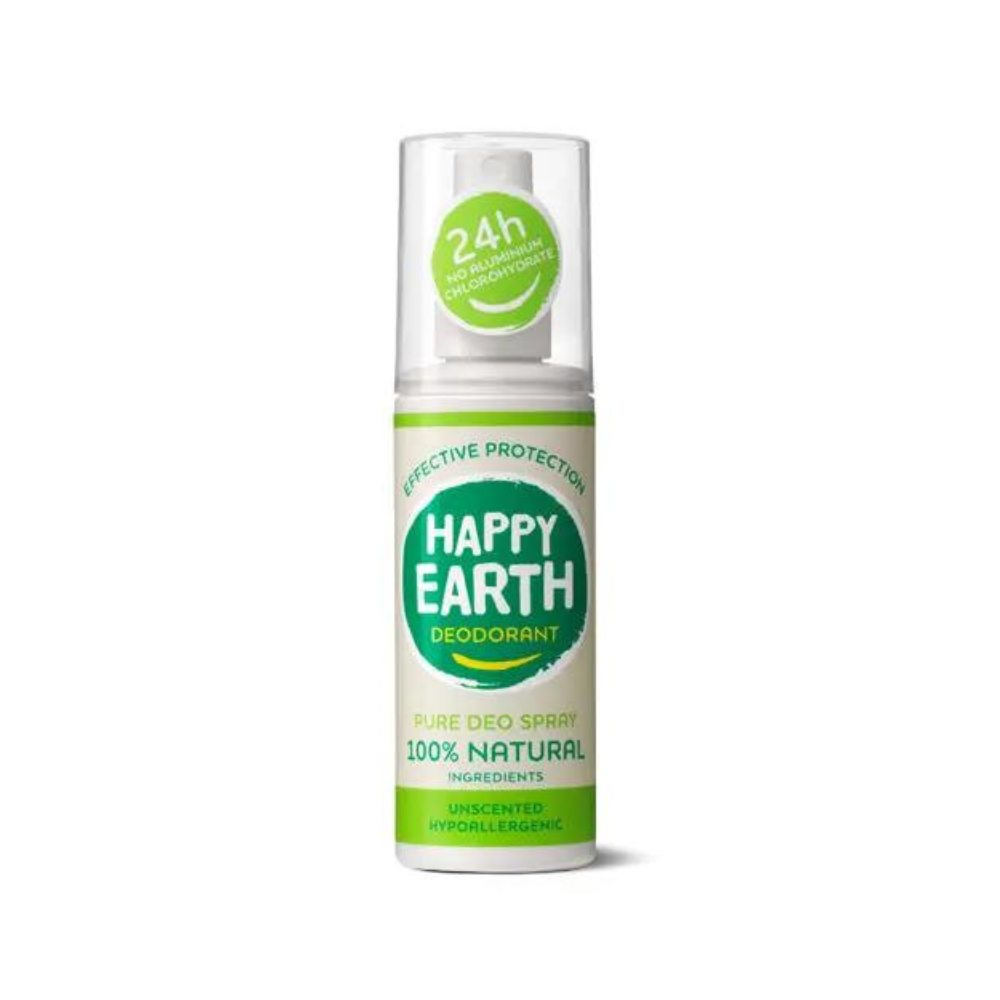 HAPPY EARTH DEODORANT yra gryniausias pasaulyje dezodorantas: 100% natūralus, 100% efektyvus ir neturi jokių cheminių medžiagų. Bekvapis hipoalerginis dezodorantas su odą raminančiu ekologišku alaviju. HAPPY EARTH DEODORANT naudojame tik tuos ingredientus, kurie daro jūsų odą laimingą. Kai užtepate ką nors ant odos, gera žinoti, kad ji neturi teršiančių ar nemalonių ingredientų, tokių kaip cheminės medžiagos, alkoholis ar kiti kenksmingi priedai. Todėl didžiuojamės turėdami NATRUE ir Vegan Society ženklus. Mūsų buteliukai pagaminti iš 100% perdirbto plastiko. Taip rūpinatės ne tik savimi, bet ir mūsų planeta! Kad būtumėte laimingi: