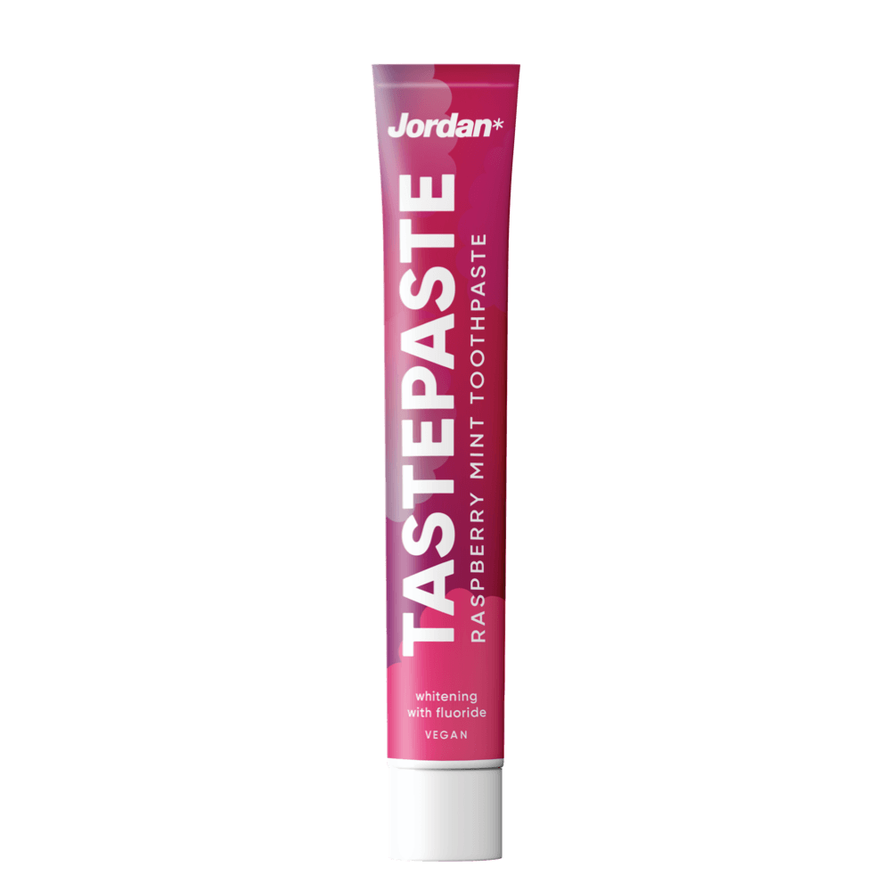 Jordan Tastepaste Raspberry Mint 50 ml dantų pasta – pripildykite dantų valymą įdomiais skoniais ir pasirūpinkite savo balta šypsena.