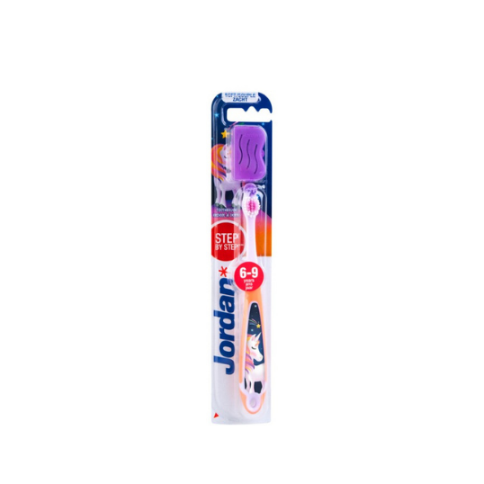 Jordan vaikų dantų šepetėlis skirtas vaikams nuo 6 iki 9 metų amžiaus.