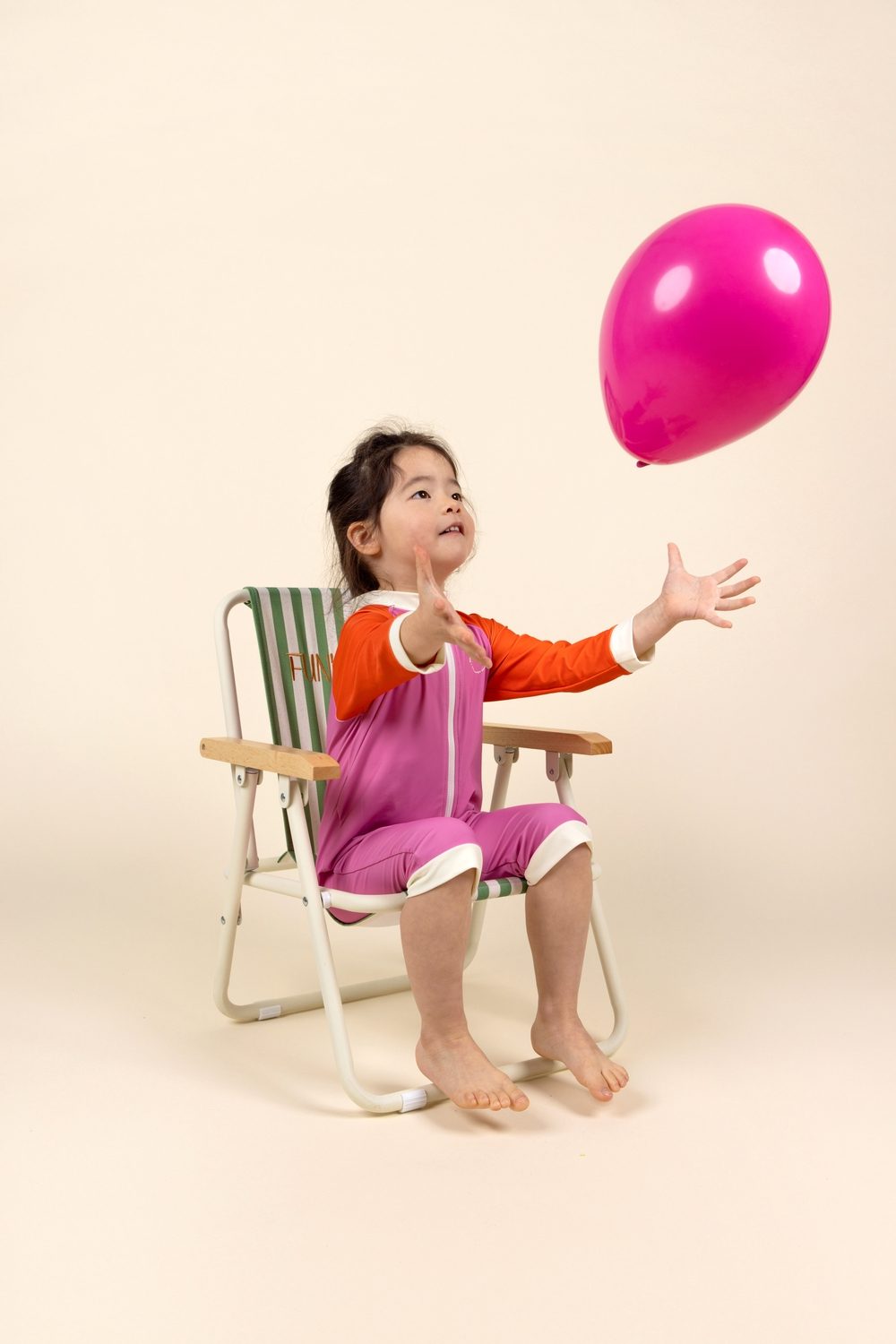 UPF 50+ audinys suteikia pilną apsaugą nuo kenksmingų UV spindulių, padedantis išsaugoti jautrią vaikų odą. Vidutinio ilgio rankovės ir kojos suteikia daugiau dengimo, o pilno ilgio užtrauktukas nuo kaklo iki pėdos palengvina rengimą ir sauskelnių keitimą net ir neramiausiems kūdikiams.