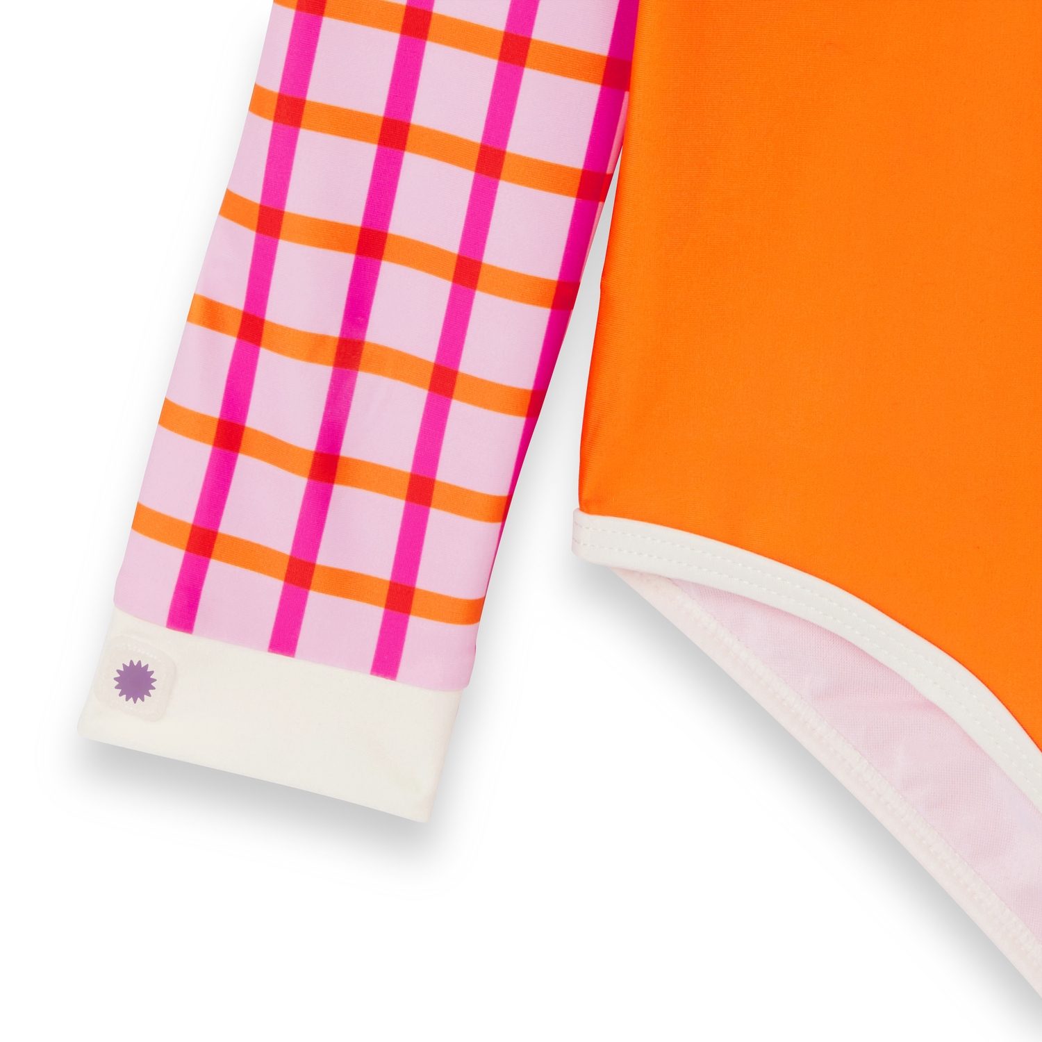 Maudymosi kostiumėlyje yra UV jutiklis, kuris keičia spalvas, kai saulės stiprumas auga – kuo tamsesnis violetinis atspalvis, tuo didesnė papildomos apsaugos reikšmė. Tai padeda vaikams geriau suprasti ir stebėti apsaugos nuo saulės poreikį.