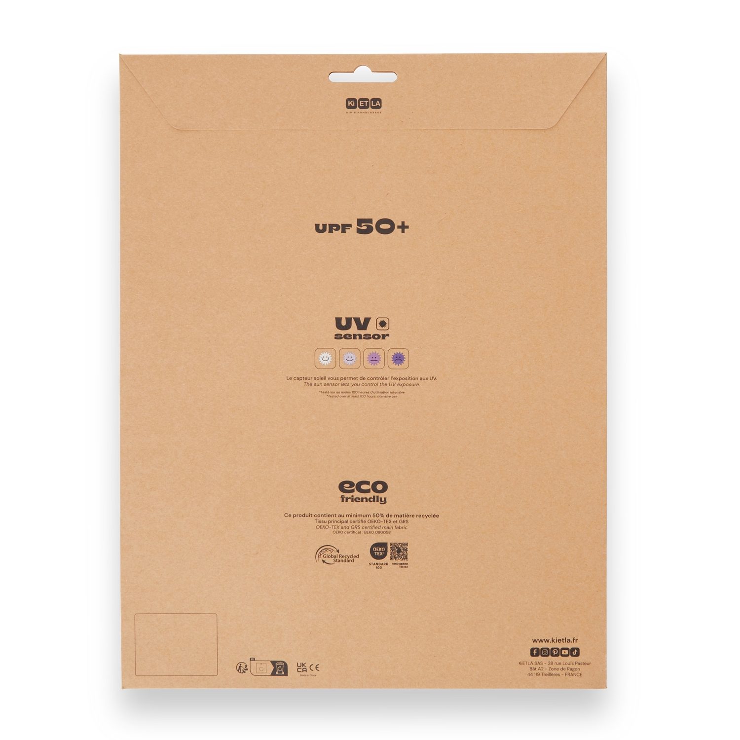 - UPF 50+ UV apsauga be cheminių medžiagų