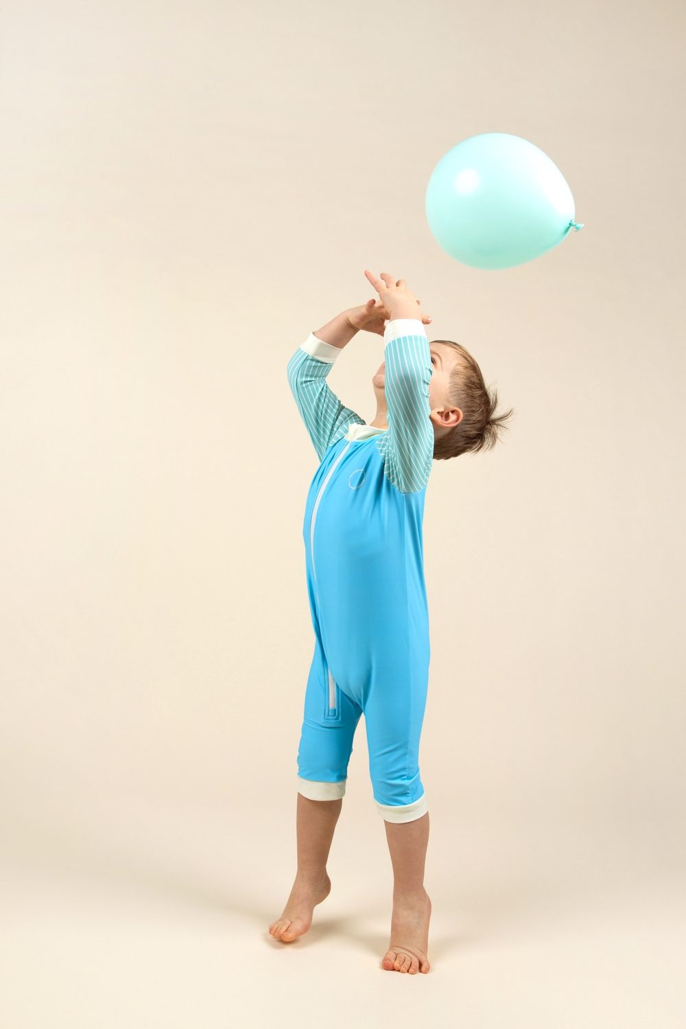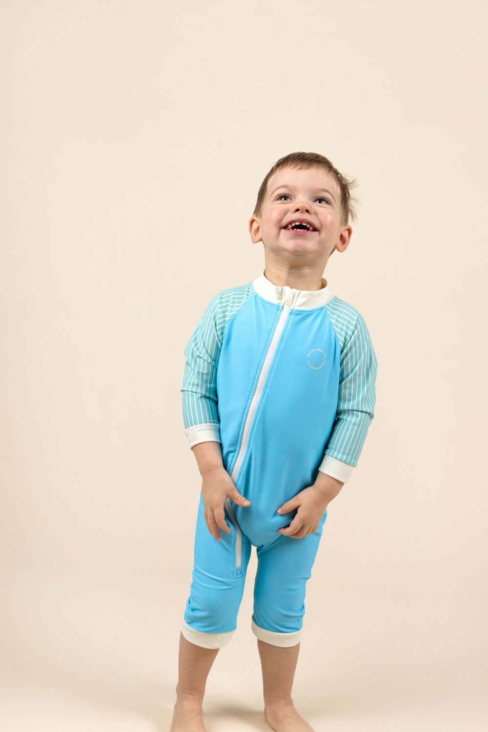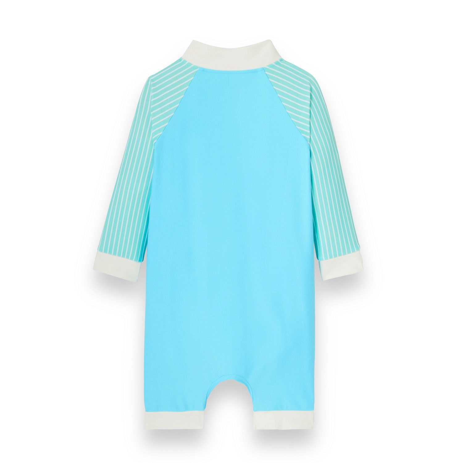 UPF 50+ audinys suteikia visišką apsaugą nuo kenksmingų UV spindulių, padėdamas išsaugoti vaikų jautrią odą. Vidutinio ilgio rankovės ir kojos suteikia didesnę apsaugą, o visas ilgis užtrauktukas nuo kaklo iki kojos leidžia lengvai aprengti ir pakeisti sauskelnes net ir neramiausiems kūdikiams.