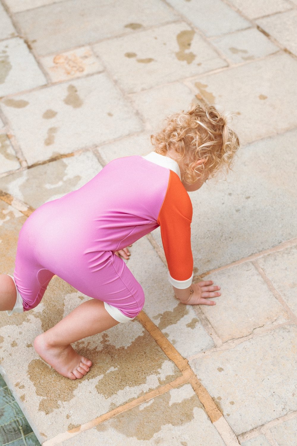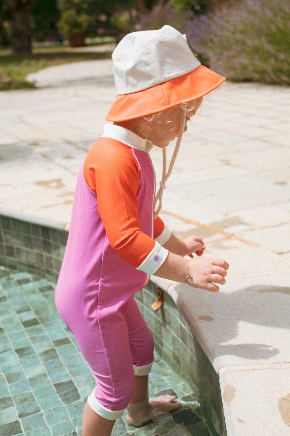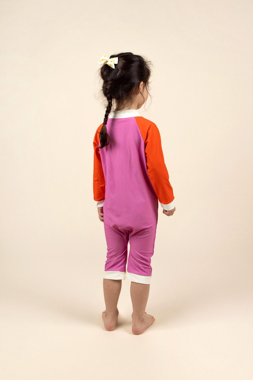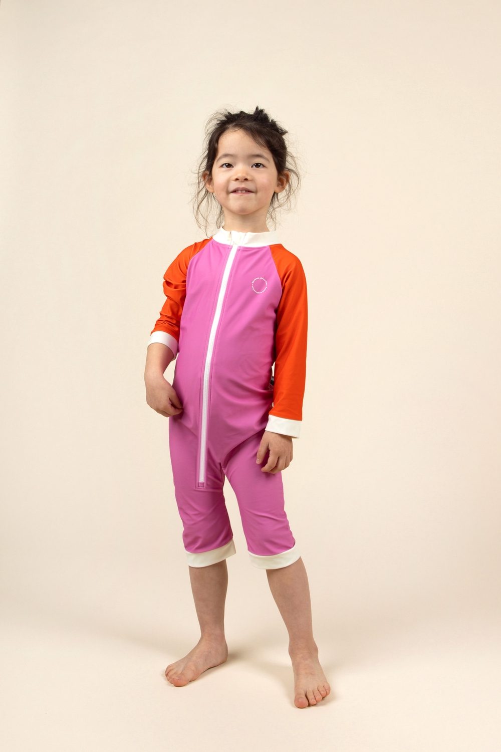 UPF 50+ audinys suteikia visišką apsaugą nuo kenksmingų UV spindulių, padedant apsaugoti jautrią vaikų odą. Vidutinio ilgio rankovės ir kojos užtikrina didesnį padengimą, o užtrauktukas per visą ilgį nuo kaklo iki pėdų leidžia lengvai aprengti ir keisti sauskelnes netgi patiems neramiausiems kūdikiams.