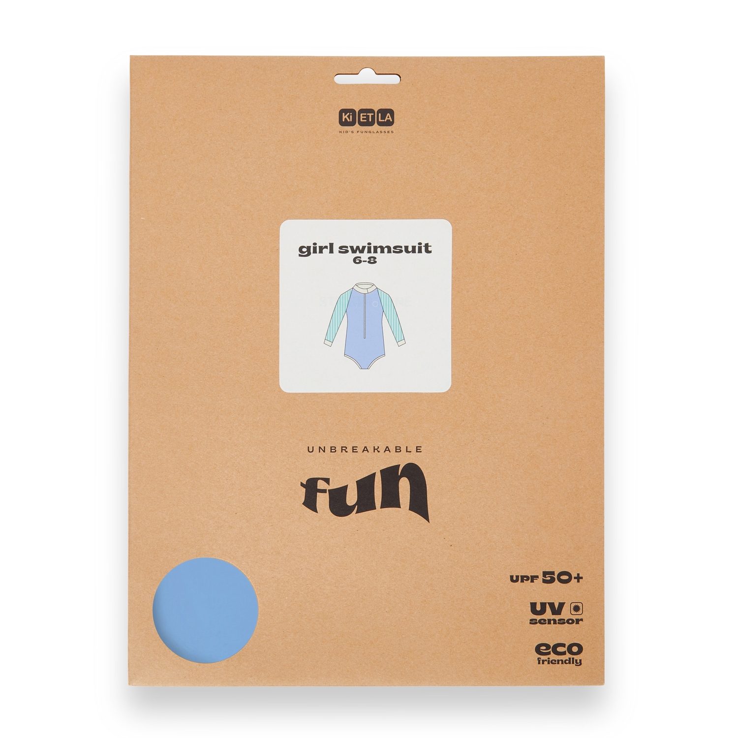 Visos maudymosi kostiumėlių ir pončo serijos pakuotės įkvėptos Ki ET LA akinių stiliaus: natūralus kraft popierius su spalvingais akcentais. Modelius, spalvas ir amžiaus grupes galima greitai atpažinti. Apačioje kairiajame kampe esanti apskritimo formos anga leidžia jausti medžiagą ir pamatyti spalvą.