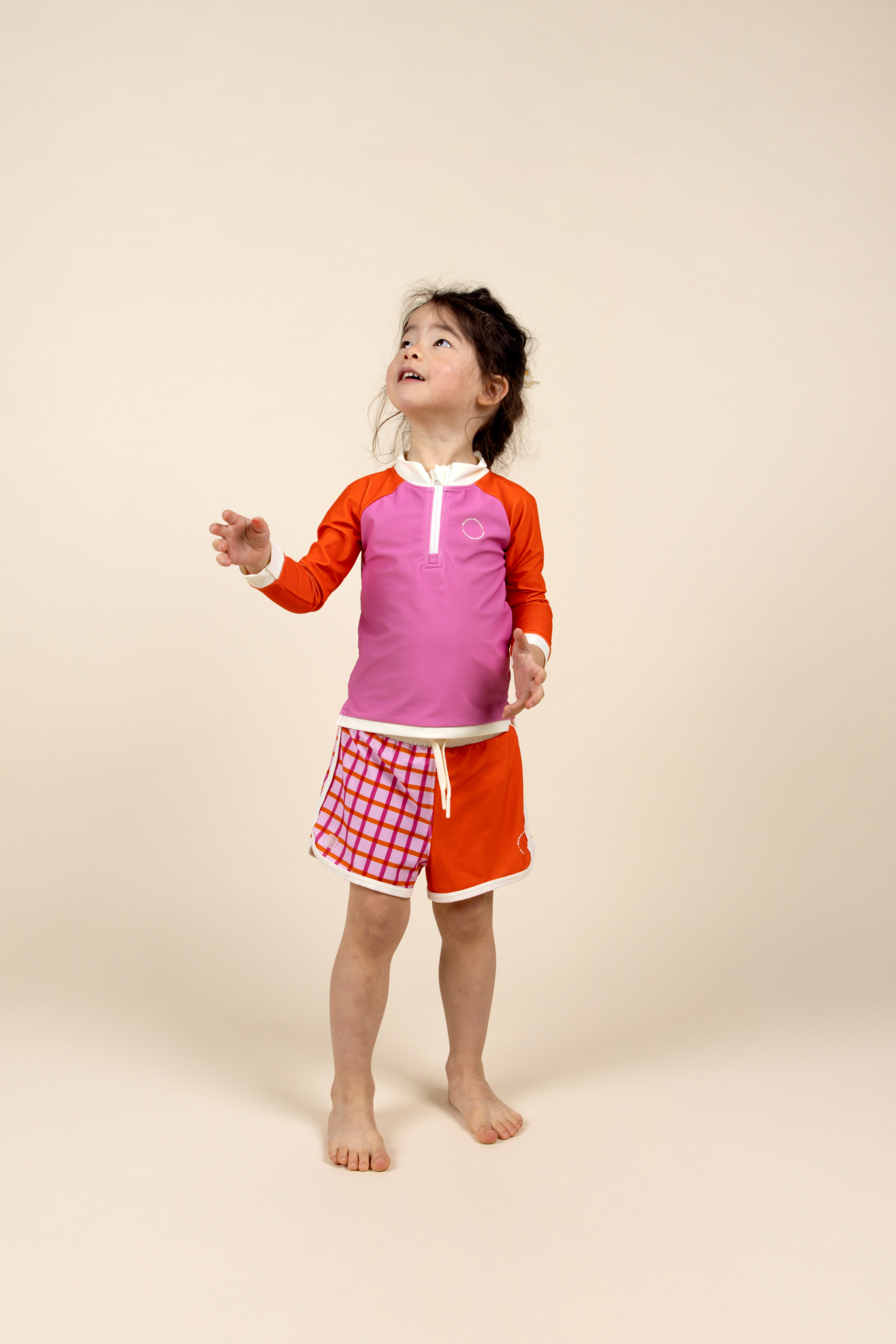 Ilgomis rankovėmis UPF 50+ audinys suteikia pilną apsaugą nuo UVA ir UVB spindulių, padėdamas išsaugoti jautrią vaikų odą natūraliai, be papildomo apdorojimo.