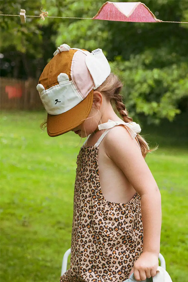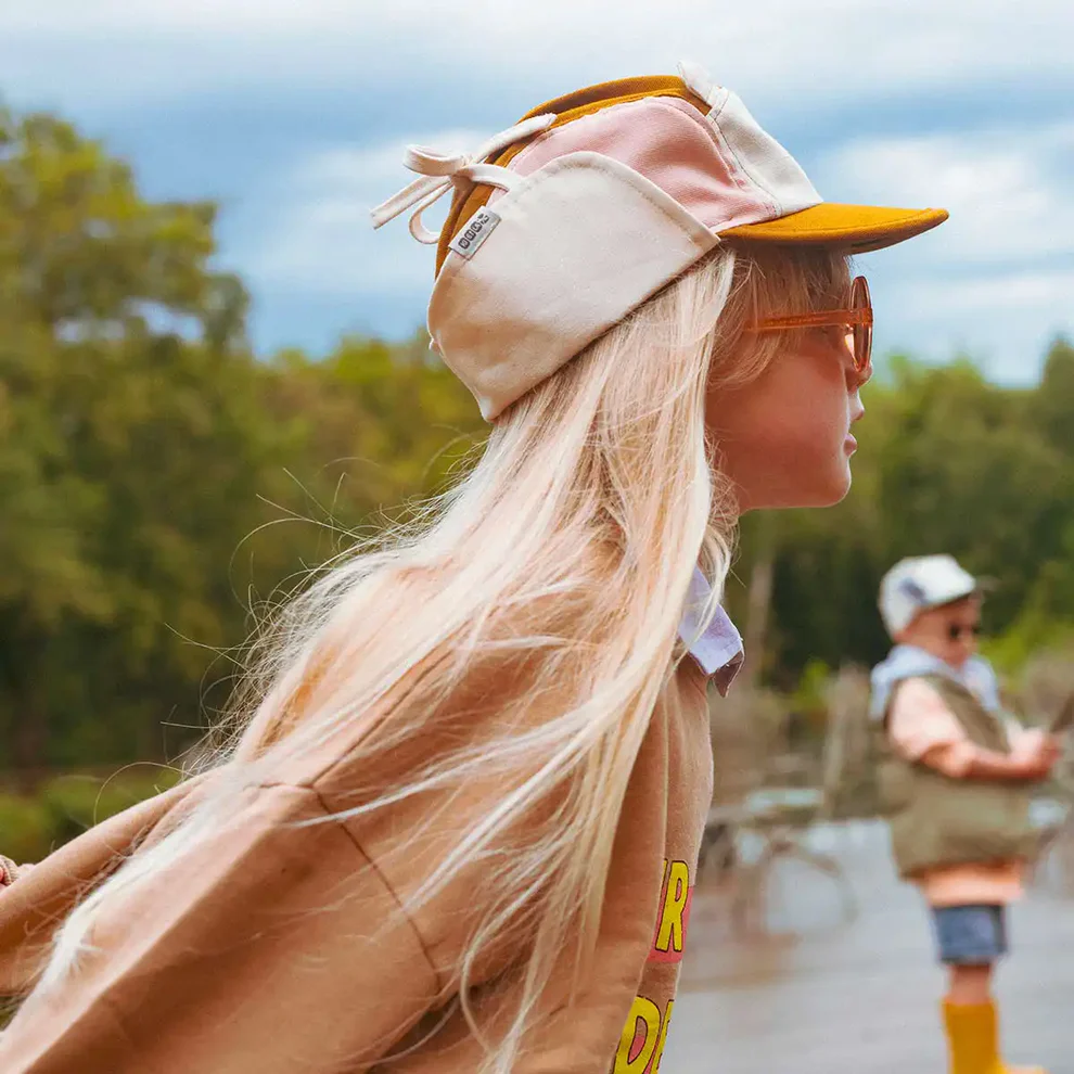 Camper Cap – tai būtinas stilingiems ir nuotykių ieškantiems vaikams. Kepurė su vintažinio stiliaus apvaliu snapeliu ir plačiu kraštu, kurį galima nuleisti, kad apsaugotų kaklą. Pagaminta Italijoje iš GOTS sertifikuotos ekologiškos medvilnės, užtikrina optimalią apsaugą nuo saulės lauko veikloms. Taip pat viduje yra unikali sistema akiniams pakabinti.