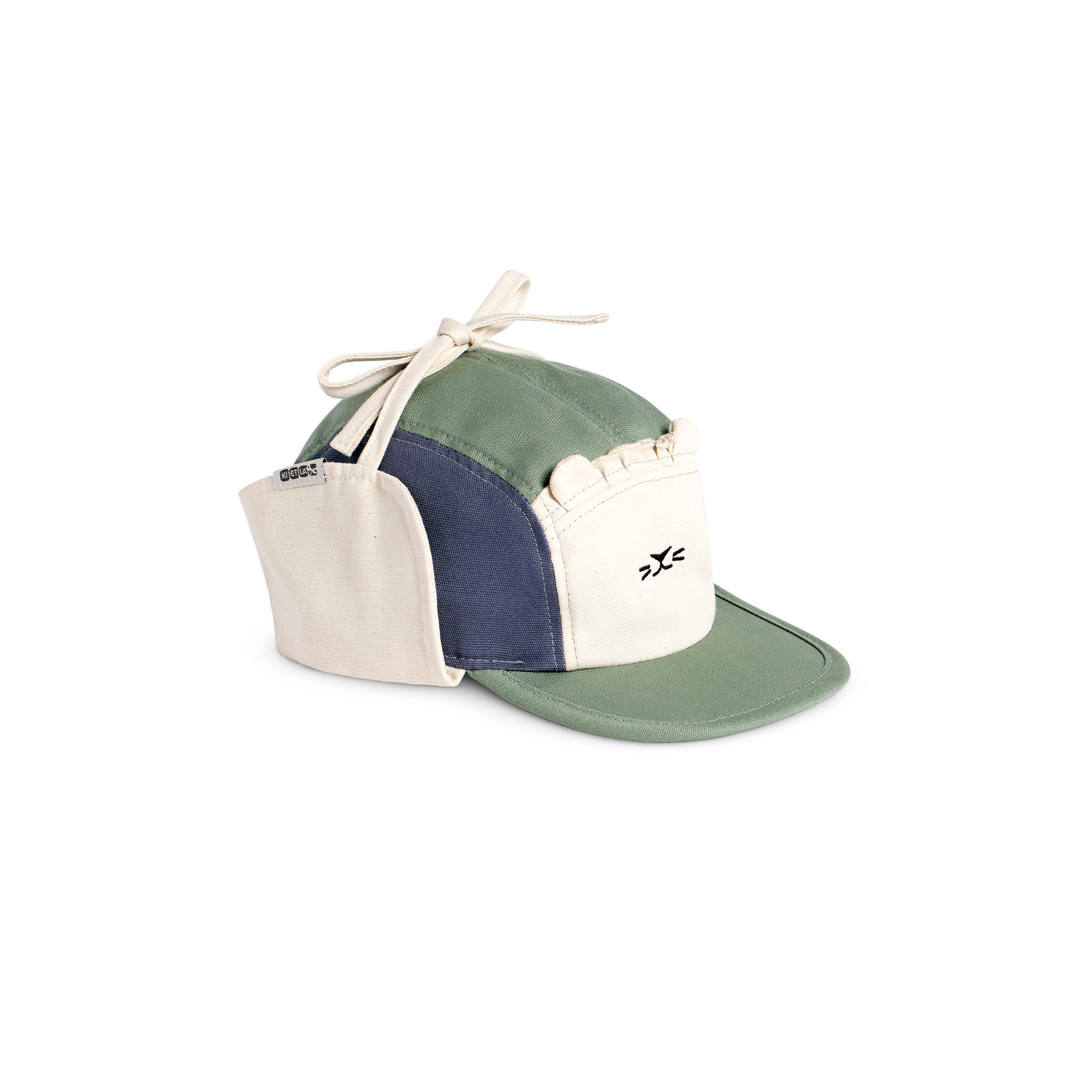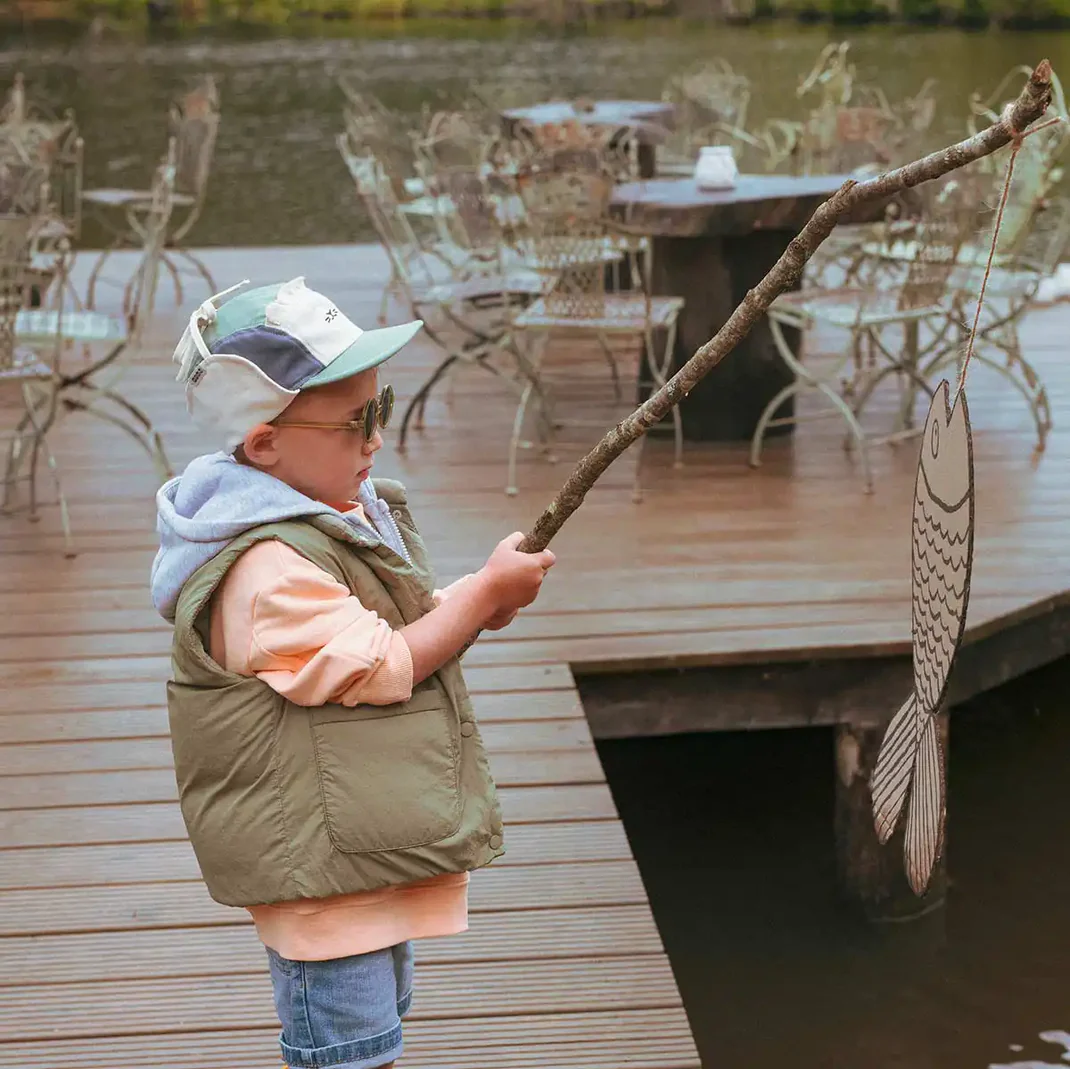 Ki ET LA akinių virvelė tvirtinasi prie kepurės – taip kepurė ir akiniai nuo saulės būna saugiai pritvirtinti kartu, užtikrinant nepriekaištingą patogumą ir prigludimą. Jokių nuskrendančių kepurių ar pamestų akinių!