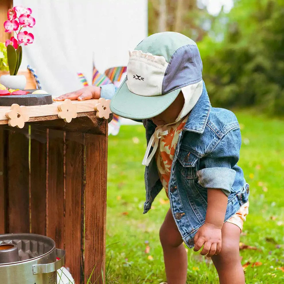Atraskite mūsų sezono favoritą: Camper kepurę! Įkvėpta lauko veiklos ir laisvalaikio gamtoje, ji tinka bet kokiai progai. Puikiai tinka šeimos pasivaikščiojimams ar vienišoms kelionėms. Ilgesnis snapelis gale apsaugo kaklą. Pagaminta Italijoje iš GOTS sertifikuotos ekologiškos medvilnės ir suteikia UPF50+ apsaugą nuo saulės. Siūloma trijų dydžių ir trijų mišrių spalvų – tai būtinas vasaros aksesuaras. Unikali sistema akiniams nuo saulės pakabinti.