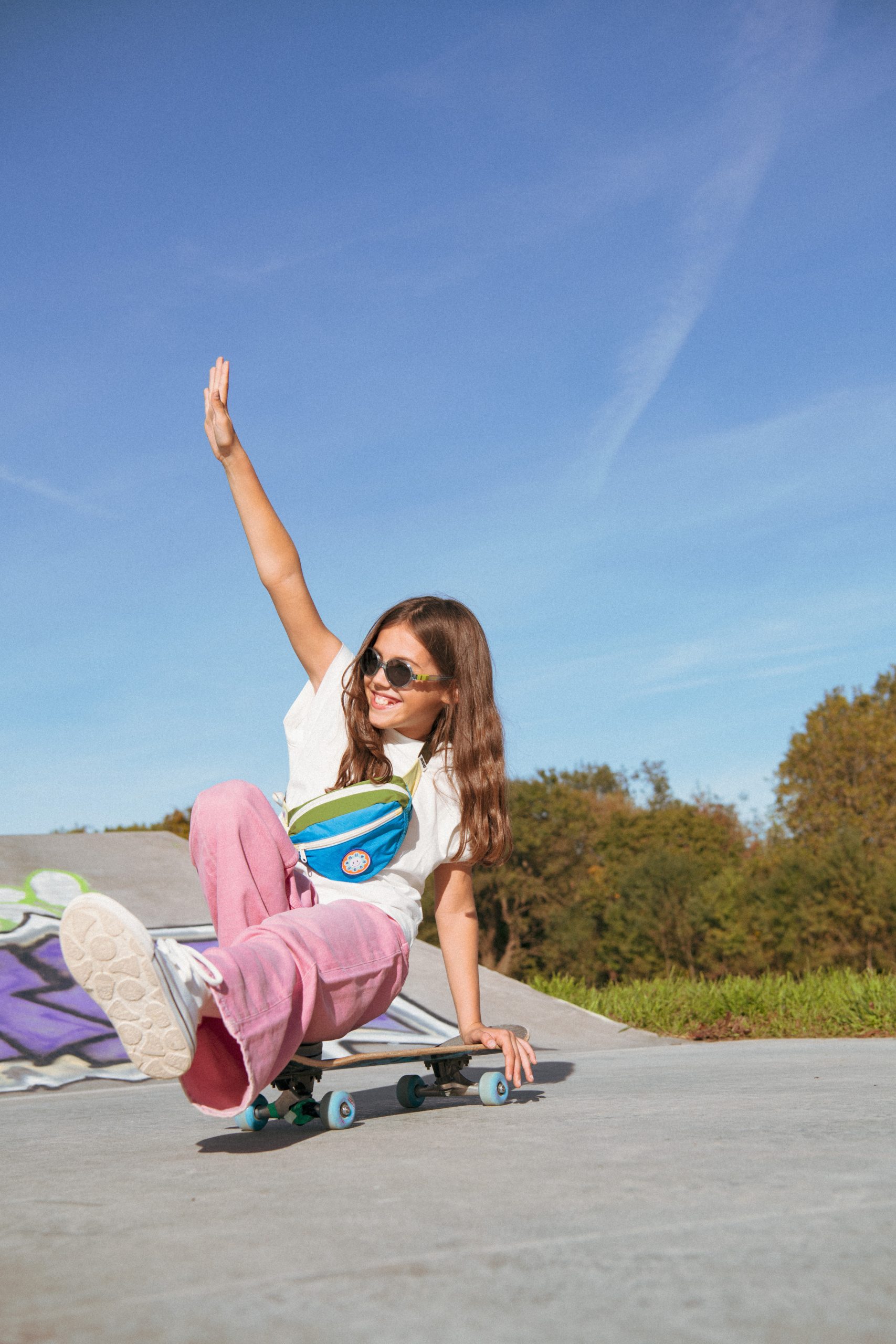 VIBE kolekcijos Pop modelis pasižymi apvalia pantos forma ir patvariu rėmeliu su kojelėmis, kurios atsidaro 180°. Pusiau storos, šiek tiek permatomos kojelės ir vientisas matinės spalvos tonas suteikia saulės akinukams išskirtinumo ir sportiško stiliaus. Galimi du dydžiai (4–7 ir 7–12), kad būtų užtikrintas didelis komfortas vaikams visose amžiaus grupėse.
