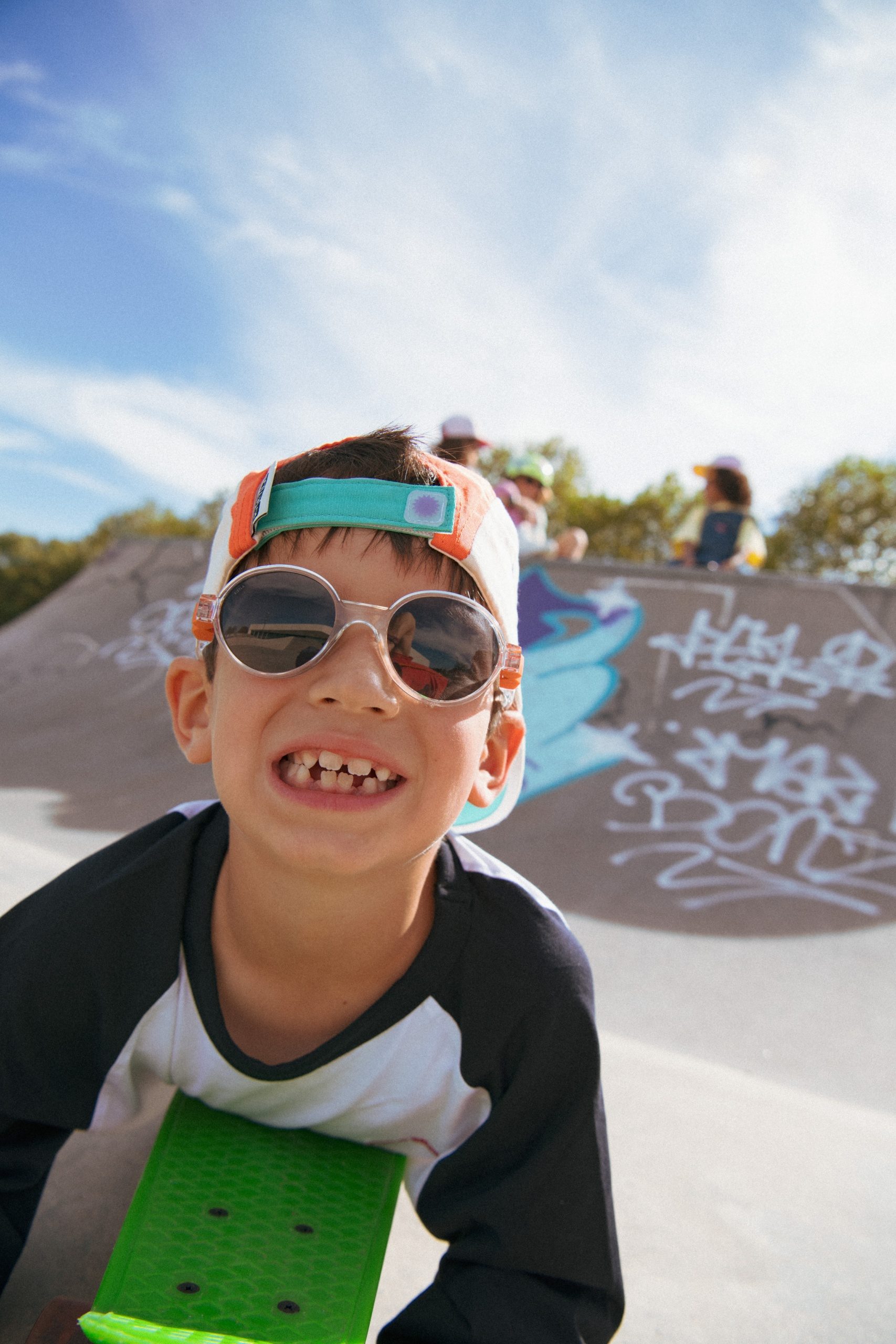 VIBE kolekcijos Pop modelis pasižymi apvalia pantos forma ir patvariu rėmeliu, kurio kojelės atsidaro iki 180°. Pusiau storos, šiek tiek permatomos kojelės ir vienodas matinis atspalvis suteikia saulės akiniams išskirtinio charakterio ir sportiško stiliaus. Galimi dviejų dydžių (4–7 ir 7–12) modeliai, kad vaikai visų amžių jaustųsi patogiai.