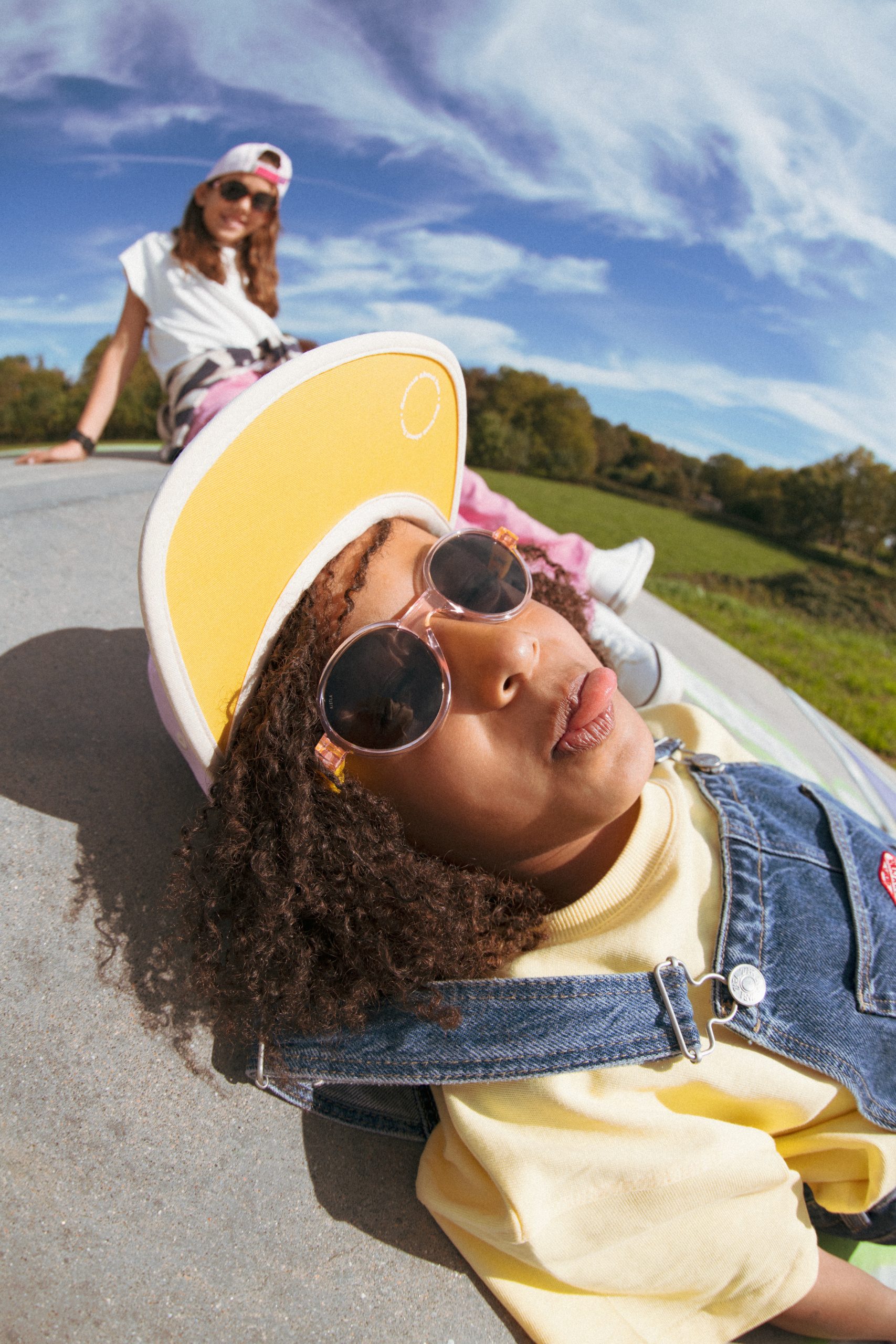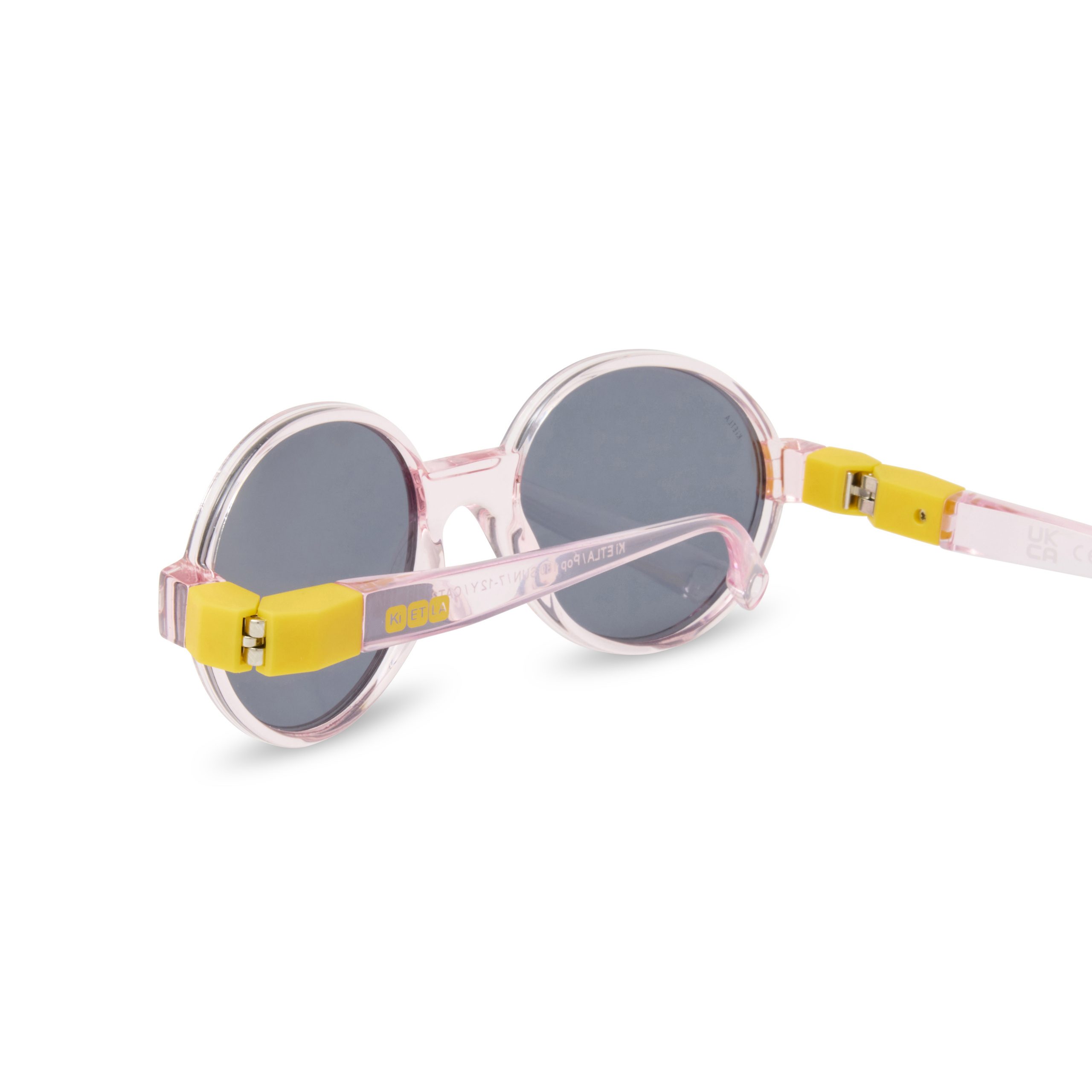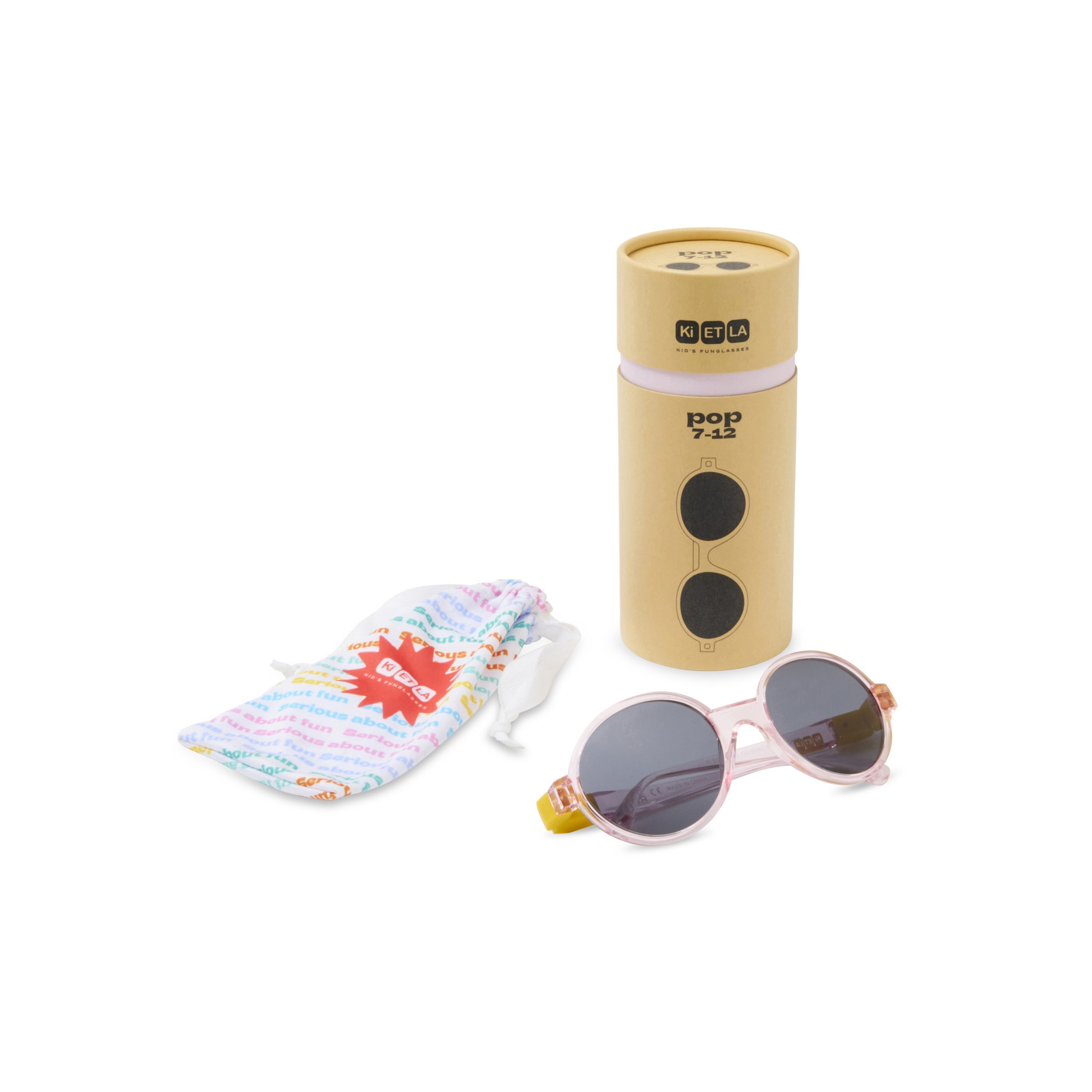 VIBE kolekcijos Pop modelis išsiskiria apvalia pantos forma ir tvirtu rėmeliu, kurio kojelės atsidaro iki 180°. Pusiau storos, šiek tiek permatomos kojelės ir vientisas matinis atspalvis suteikia saulės akiniams charakterio ir sportiško stiliaus. Galimi dviejų dydžių variantai (4–7 ir 7–12), užtikrinantys patogų prigludimą vaikams įvairaus amžiaus.