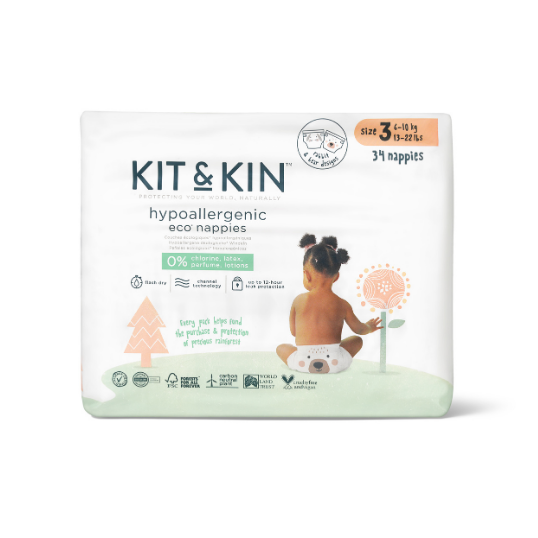 Apdovanojimus pelniusios „Kit&Kini“ sauskelnės yra dermatologiškai patvirtintos. Šios aukščiausios kokybės sauskelnės yra hipoalerginės. Ant sauskelnių nugarėlės atspausdinti gyvūnų veideliai, todėl jos yra ypač žavios. 3 dydžio sauskelnės papuoštos meškučio ir triušio atvaizdais.