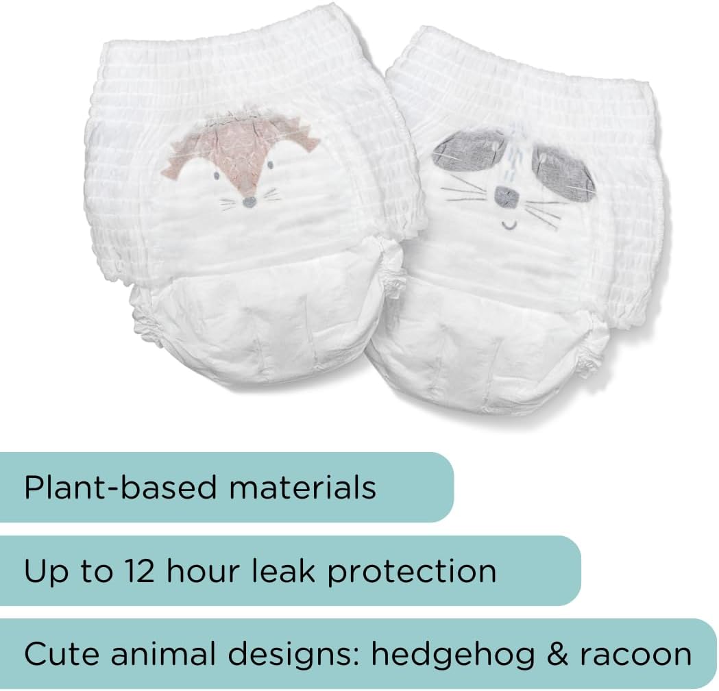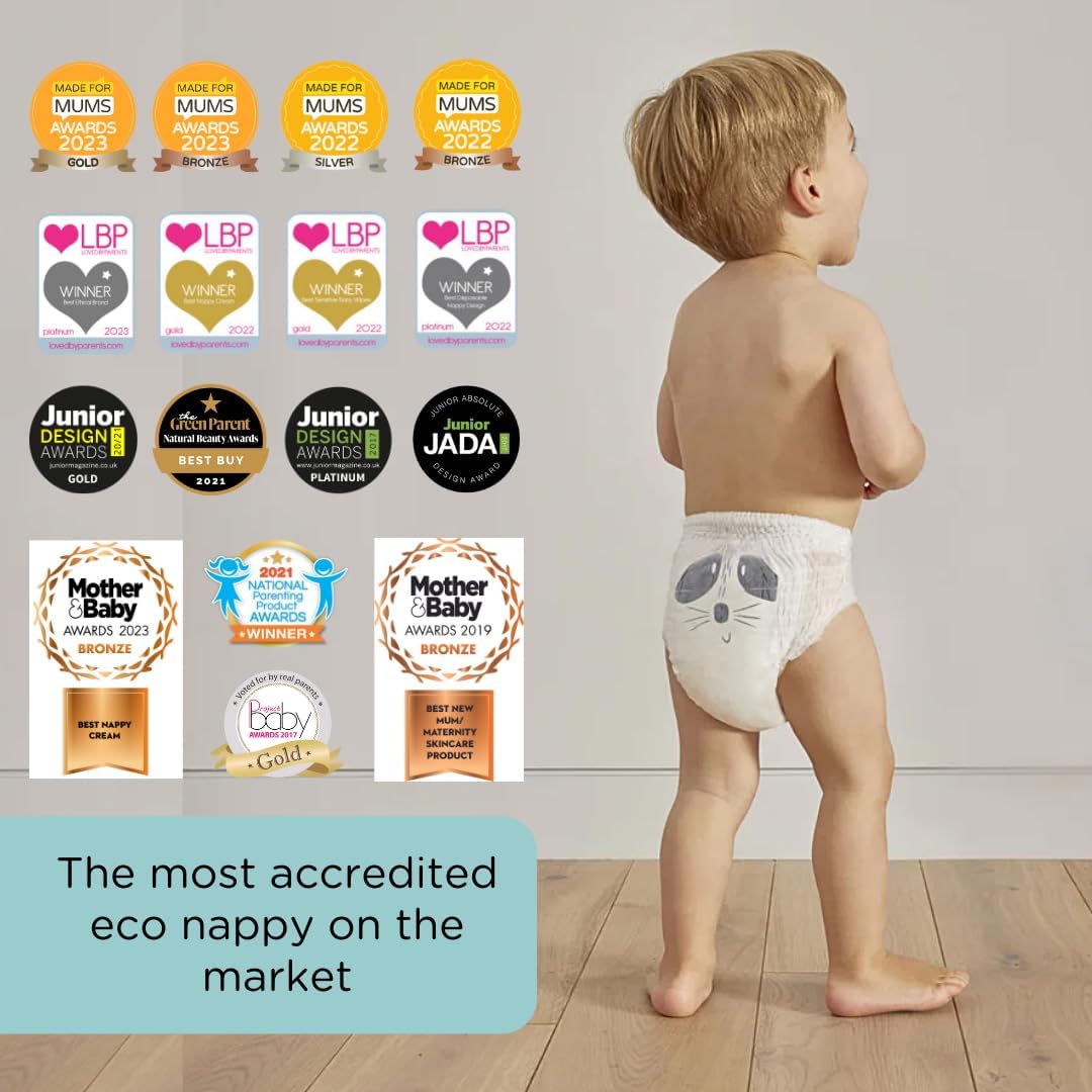 Švelnus vidinis ir išorinis sauskelnių sluoksniai pagaminti iš natūralių augalinės kilmės medžiagų. Absorbuojantis sluoksnis gaminamas iš bechloringos medienos celiuliozės, užtikrinančios 12 valandų apsaugą nuo pratekėjimo. Priekinė juosta, lipdukai, apsauginės užtvaros ir pakuotė pagamintos iš biologiškai skaidžių medžiagų, suyra per 3–6 metus. Juosmens juosta prisitaiko prie vaiko kūno ir judesių.