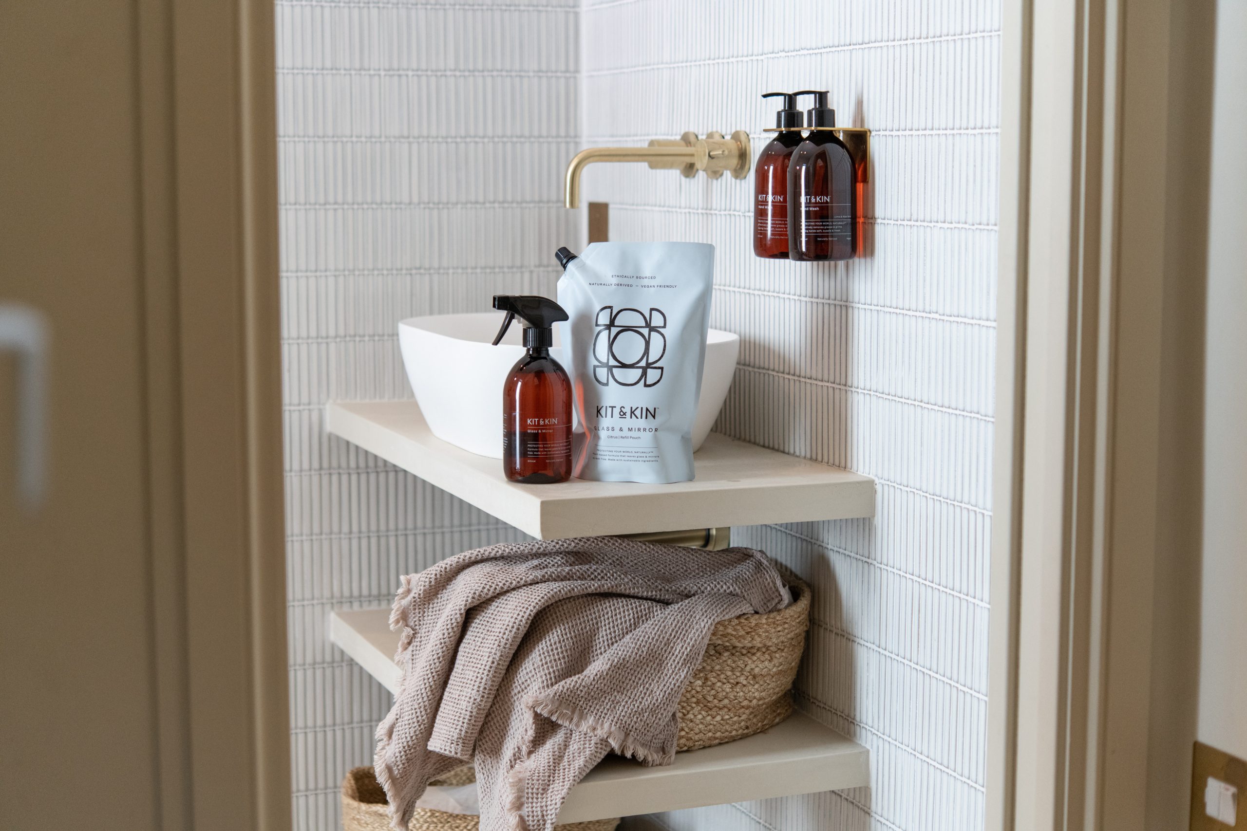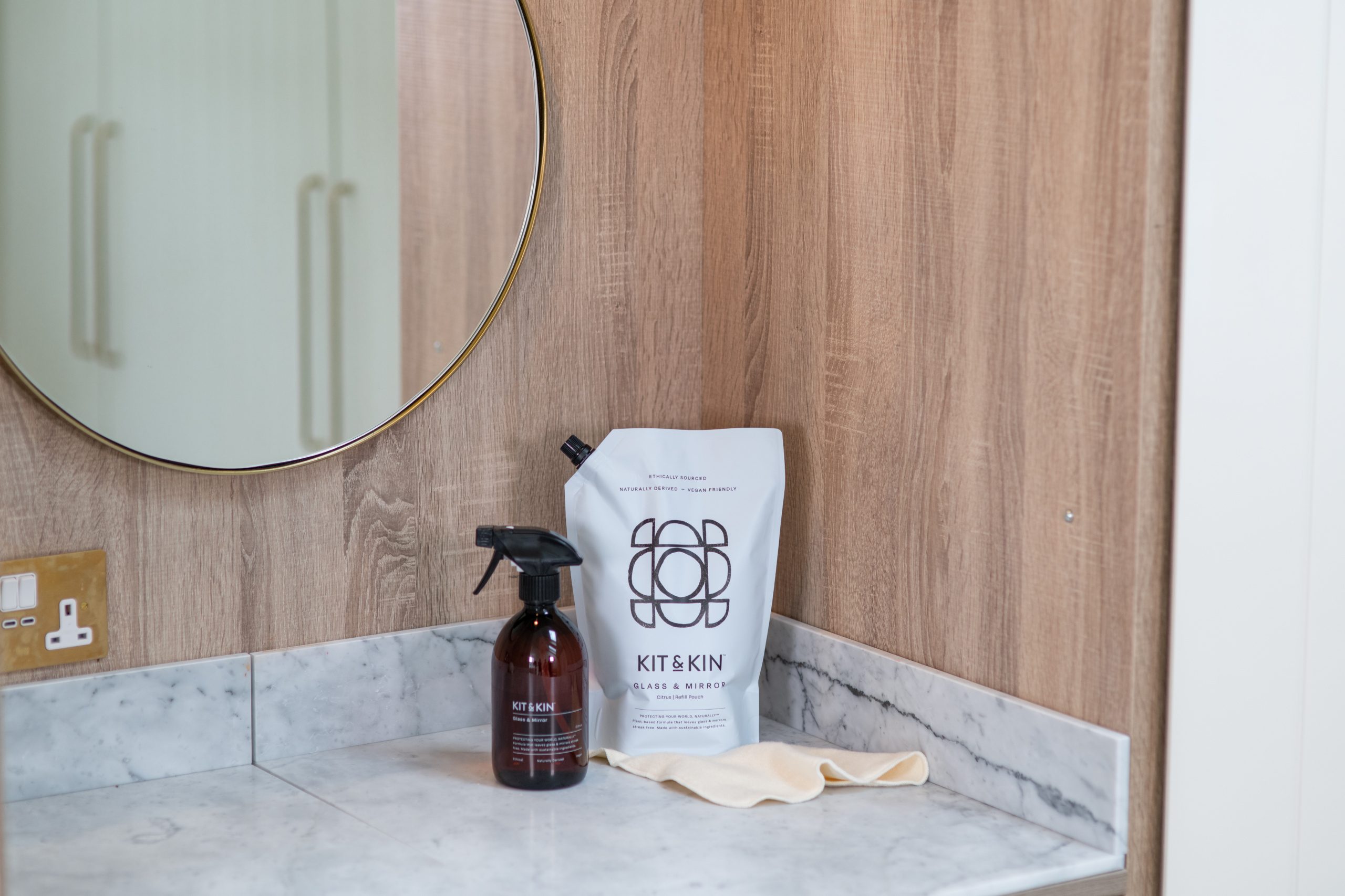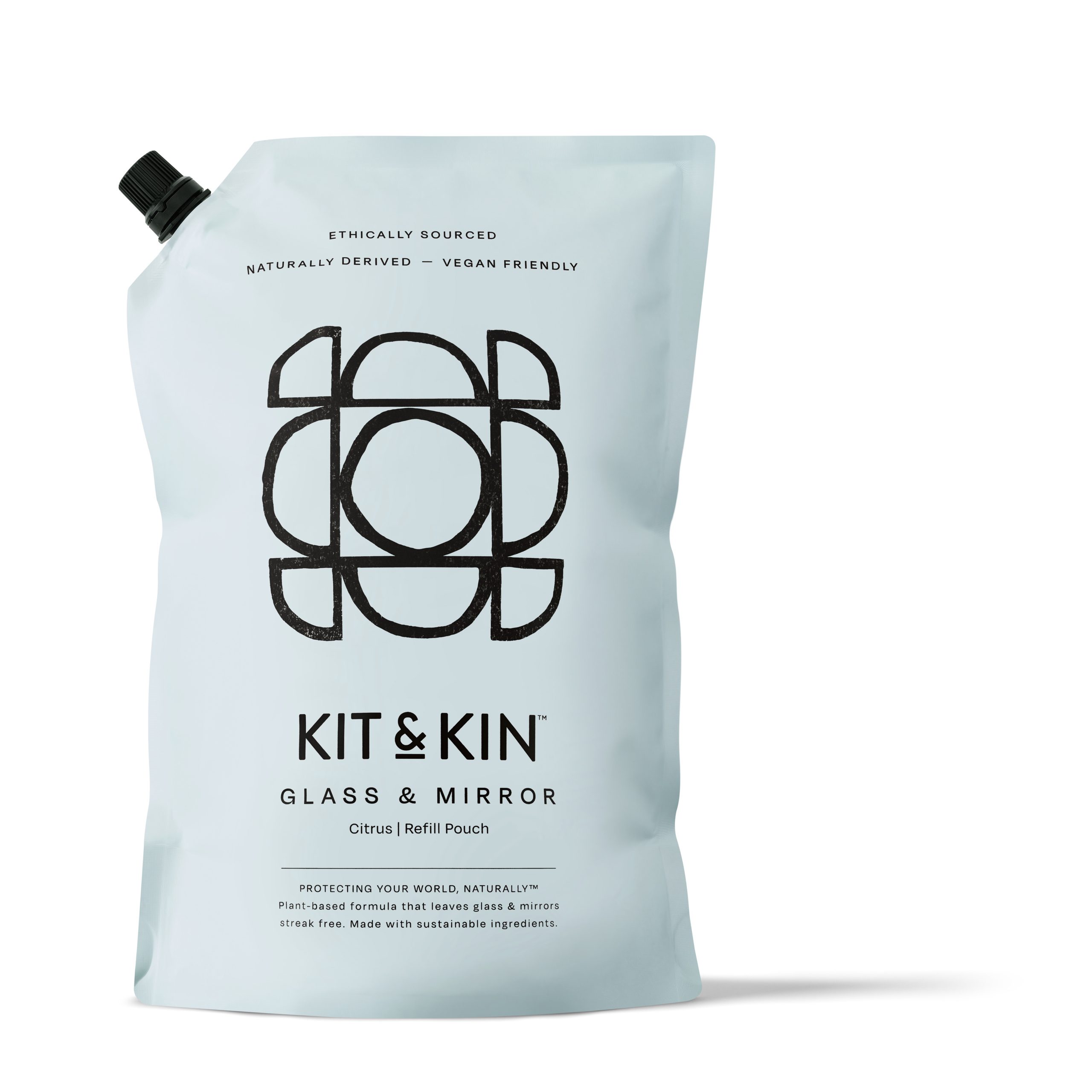 Mūsų švelnus, augalinės kilmės Kit & Kin stiklų ir langų valiklis lengvai pašalina nešvarumus nuo veidrodžių, langų ir nerūdijančio plieno, palikdamas juos švarius be dryžių.