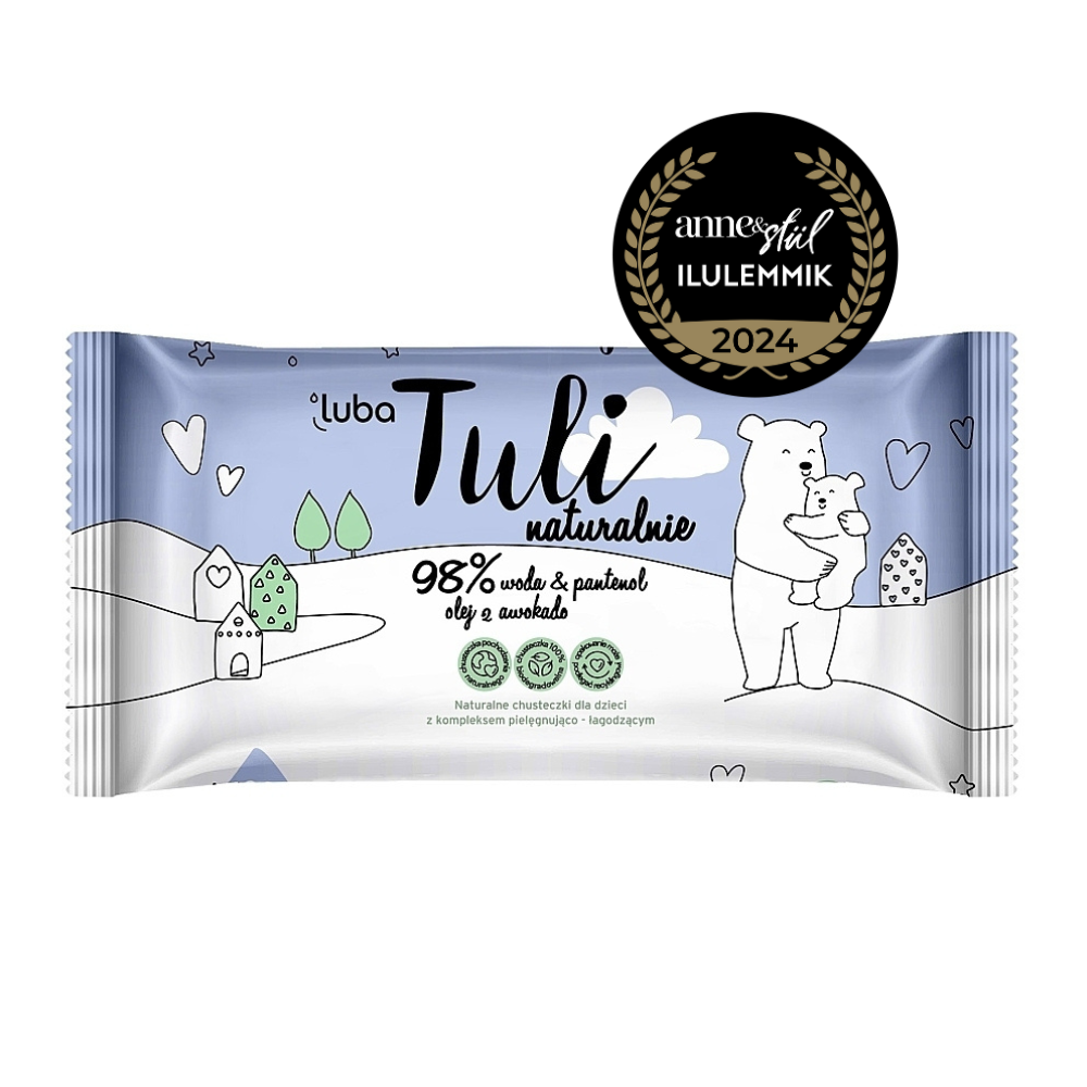 Švelnios, natūralios Luba Tuli drėgnos servetėlės su prižiūrinčiu ir raminančiu kompleksu, kuriame yra 98 % vandens, pantenolio ir avokadų aliejaus. Skirtos kūdikių odos priežiūrai, valymui ir gaivinamajam poveikiui nuo pirmojo gyvenimo mėnesio.