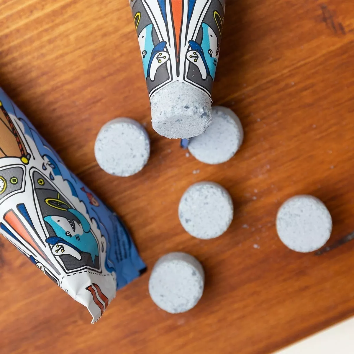 Natūralūs Bubble Boat ingredientai rūpinasi jautria vaiko oda. Veganiška formulė apima smulkias jūros druskas, aukštos kokybės makadamijos riešutų aliejų, drėkinantį kakavos sviestą ir augalinės kilmės spalvotas druskos kristalus, kurie nudažo vonios vandenį dangaus mėlynumo spalva.