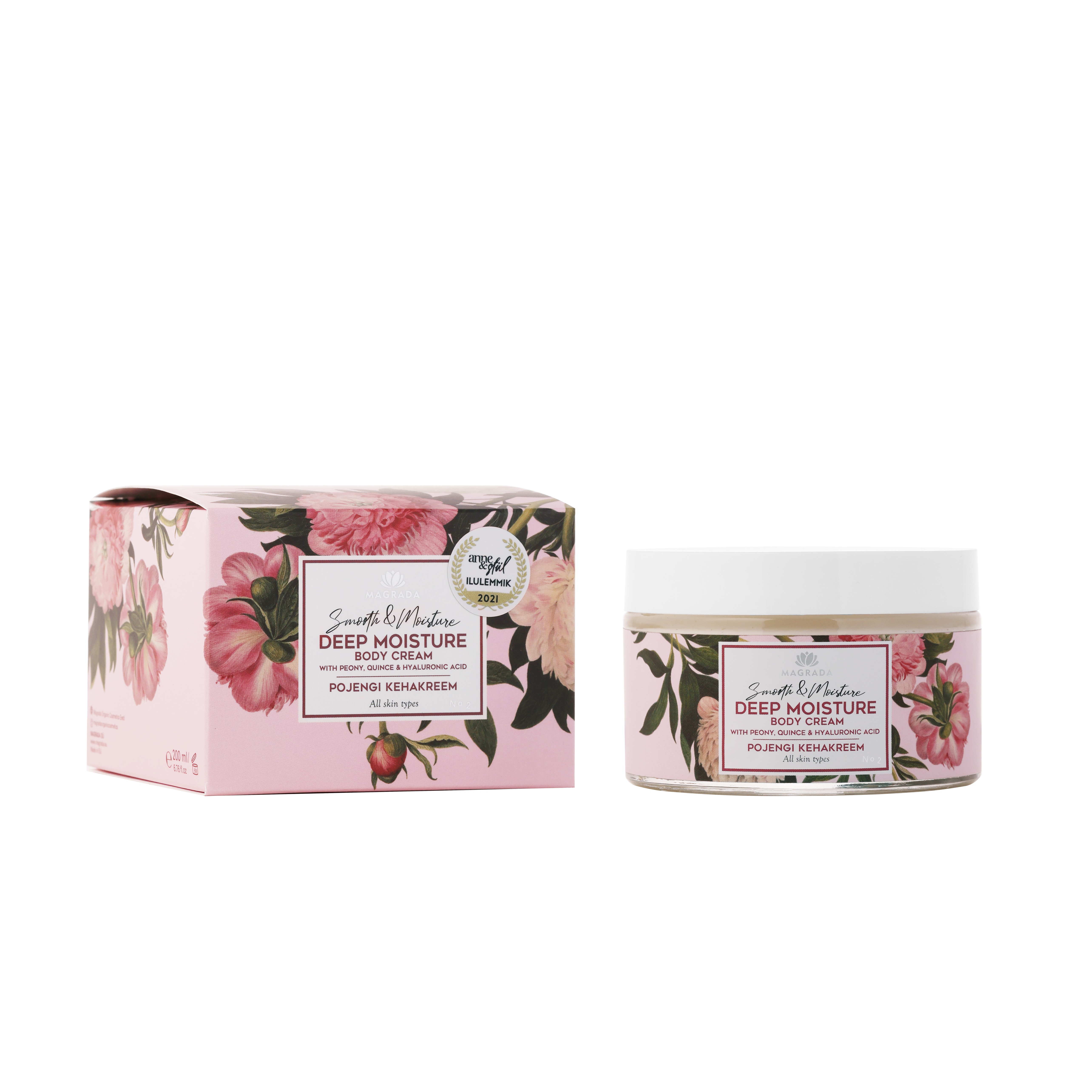 Sinergiškai derinamas kūno kremas su septyniais vertingais augaliniais aliejais – kokosų aliejumi, dygminų aliejumi, abrikosų kauliukų aliejumi, simondsijų vašku, kakavos sviestu, avokadų aliejumi ir saulėgrąžų sėklų aliejumi – sukurtas kasdieniam odos drėkinimui. Sudėtis praturtinta svarainio ekstraktu – antioksidantų ir vitamino C šaltiniu, kuris saugo odą nuo drėgmės praradimo. Greitai įsigeriantis kremas skatina odos ląstelių atsinaujinimą ir palaiko elastingumą, išlaikydamas jaunatvišką odą. Švelnios bijūnų žiedlapių natos suteikia odai kerintį aromatų puokštę.