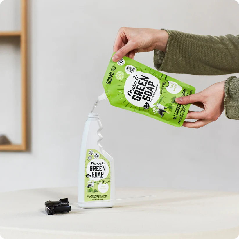 Marcel’s Green Soap papildymo pakuotė yra bent 97 % biologiškai skaidoma. Su šiuo ekonomišku papildymu sutaupote 56 % plastiko, palyginti su buteliu.