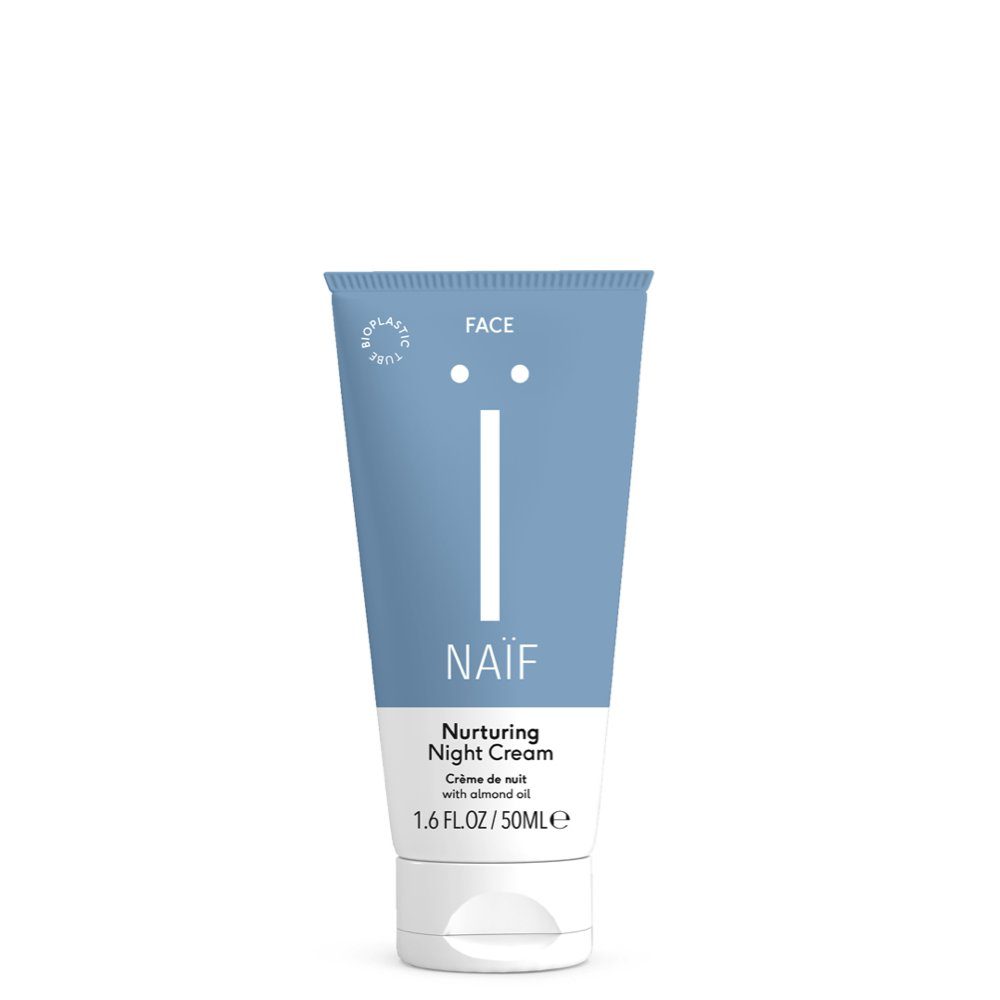 Kadangi oda atsistato ir atsinaujina miego metu, kokybiškas miegas ir švarūs odos priežiūros produktai yra labai svarbūs odos sveikatai. Naïf maitinamasis naktinis kremas sukurtas taip, kad atsibustumėte su gražia ir sveikai atrodančia oda. Pridėtas saldžiųjų migdolų aliejus, taukmedžio sviestas ir makadamijų ekstraktas palaiko odos drėgmę.