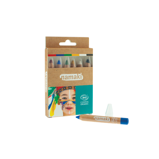 Namaki veido piešimo pieštukai pagaminti iš natūralių ingredientų, yra saugūs vaikams, nuplaunami vandeniu ir muilu.