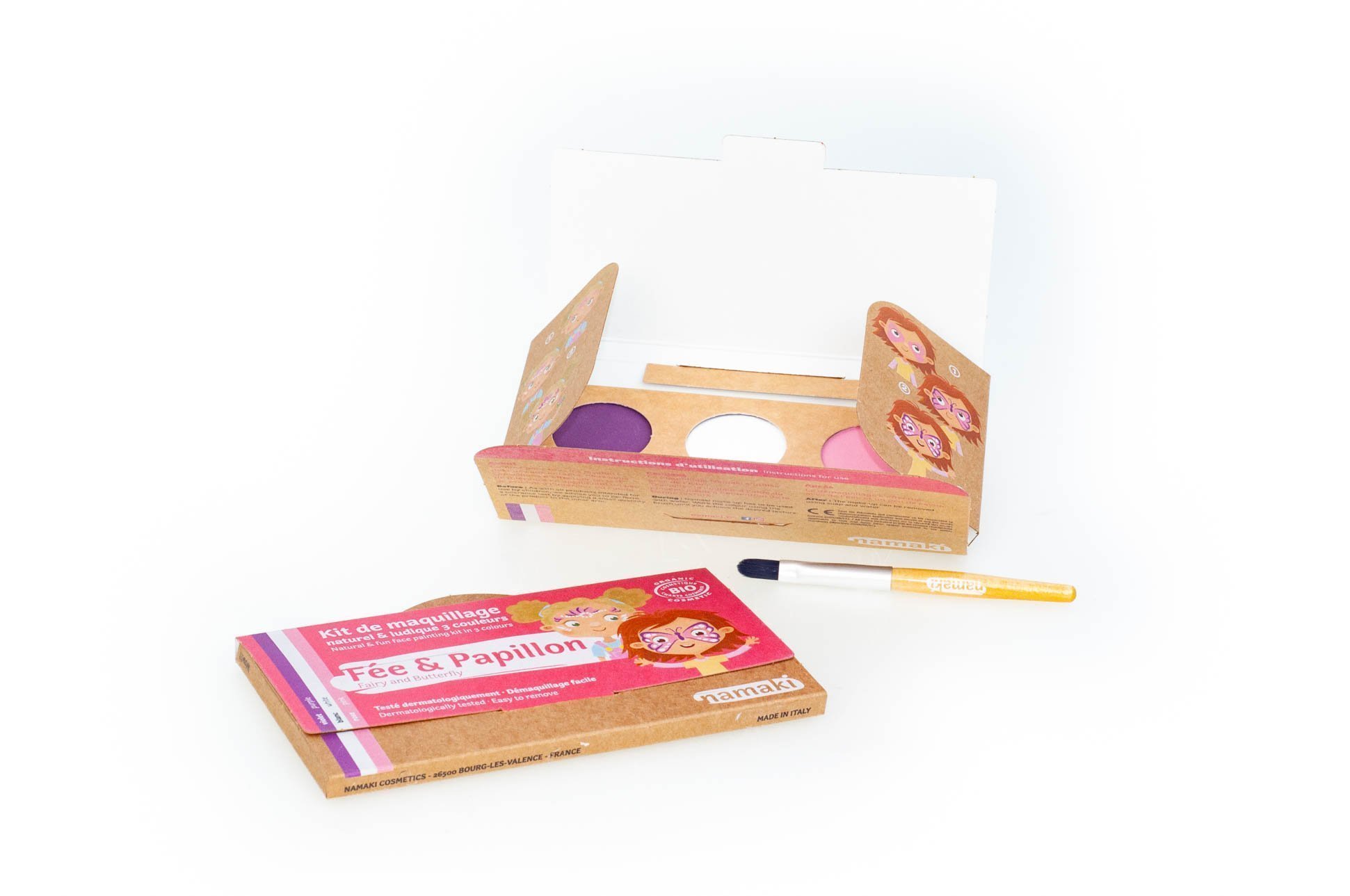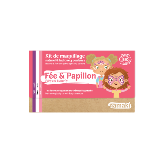 Su rinkiniu, sudarytu iš trijų spalvų, pagal pridėtas instrukcijas galite nusipiešti fėją ir drugelį ant veido.