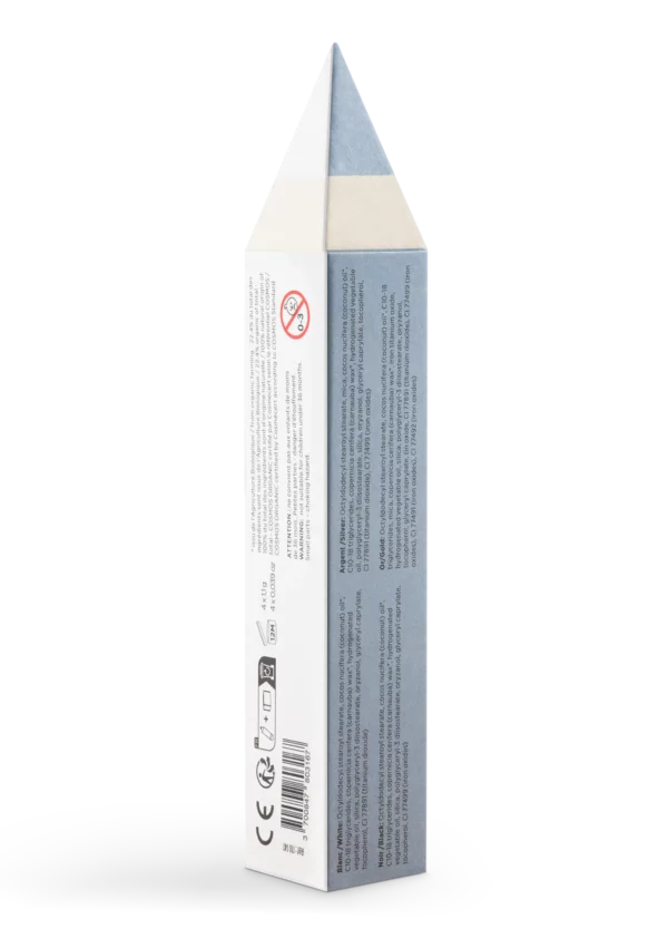 Sudedamosios dalys: RICINUS COMMUNIS (RICINŲ) SĖKLŲ ALIEJUS*, HIDROKSISTEARILO/LINOLENO/OLIEJINĖS POLIGLICERIDAI, OKTYLDODEKANOLIS, COPERNICIA CERIFERA CERA (COPERNICIA CERIFERA (KARNAUBOS) VAŠKAS)*, PRUNUS ARMENIACA (ABRIKOSO) KAULAVYŽIŲ EKSTRAKTAS, C10-18 TRIGLICERIDAI, HELIANTHUS ANNUUS (SAULĖGRĄŽŲ) SĖKLŲ ALIEJUS*, MICA, CANDELILLA CERA (EUPHORBIA CERIFERA (CANDELILLA) VAŠKAS), AROMATAS, BUTYROSPERMUM PARKII (TAUKMEDŽIO) SVIESTAS*, PERSEA GRATISSIMA (AVOKADO) ALIEJUS*, SIMMONDSIA CHINENSIS (JOJOBOS) SĖKLŲ ALIEJUS*, PUNICA GRANATUM (GRANATO) VAISIŲ EKSTRAKTAS*, CHAMOMILLA RECUTITA (VAISTINĖ RAMUNĖ) ŽIEDŲ EKSTRAKTAS*, ELAEIS GUINEENSIS (PALMIŲ) SVIESTAS*, LEICITINAS, TOCOFEROLIS, ASKORBYLIO PALMITATAS, CITRINŲ RŪGŠTIS, CI77891 (TITANO DIOKSIDAS), CI77492 (GELTONIEJI GELEŽIES OKSIDAI)