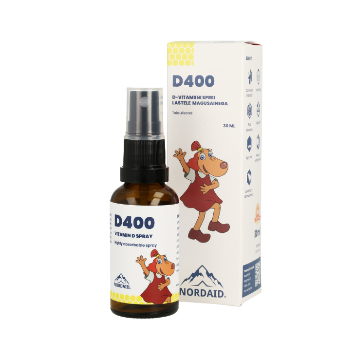 Nordaid D400 purškalas lengvai įsisavinamas, nes iš karto per burnos gleivinę patenka į vaiko kraują. Vitaminas D padeda išlaikyti kaulus ir dantis stiprius ir palaiko normalų vaiko imuninės sistemos veikimą.